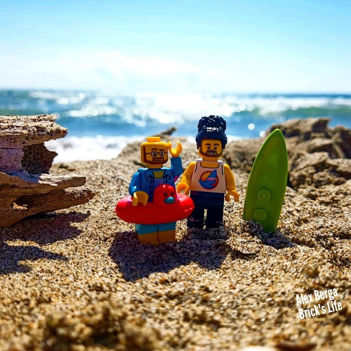 Non è stato facile trovare un buon punto per la foto, le due minifigures sembravano più in mezzo a un deserto che su una spiaggia! fortuna che un tratto della riva del mare era rialzata, così mi sono potuto avvicinare di più al mare, evitando che le onde mi portassero via le minifigures!