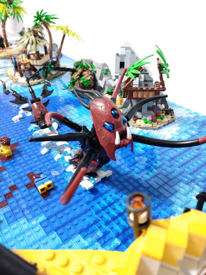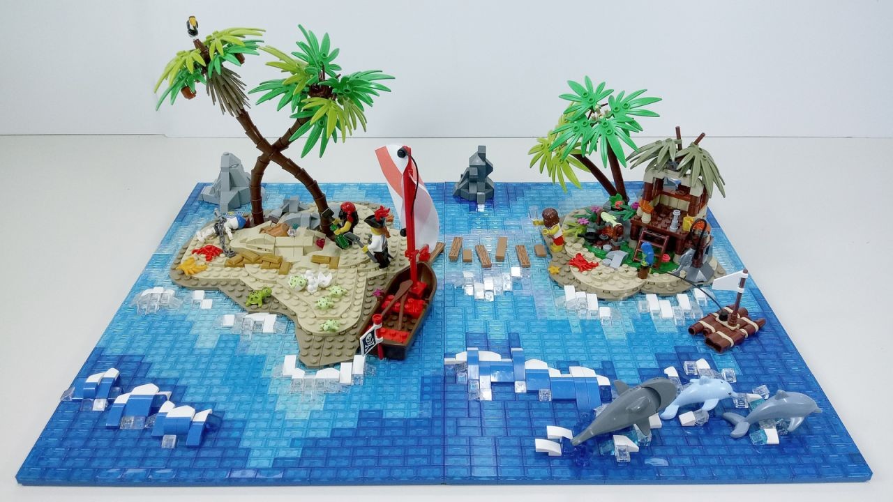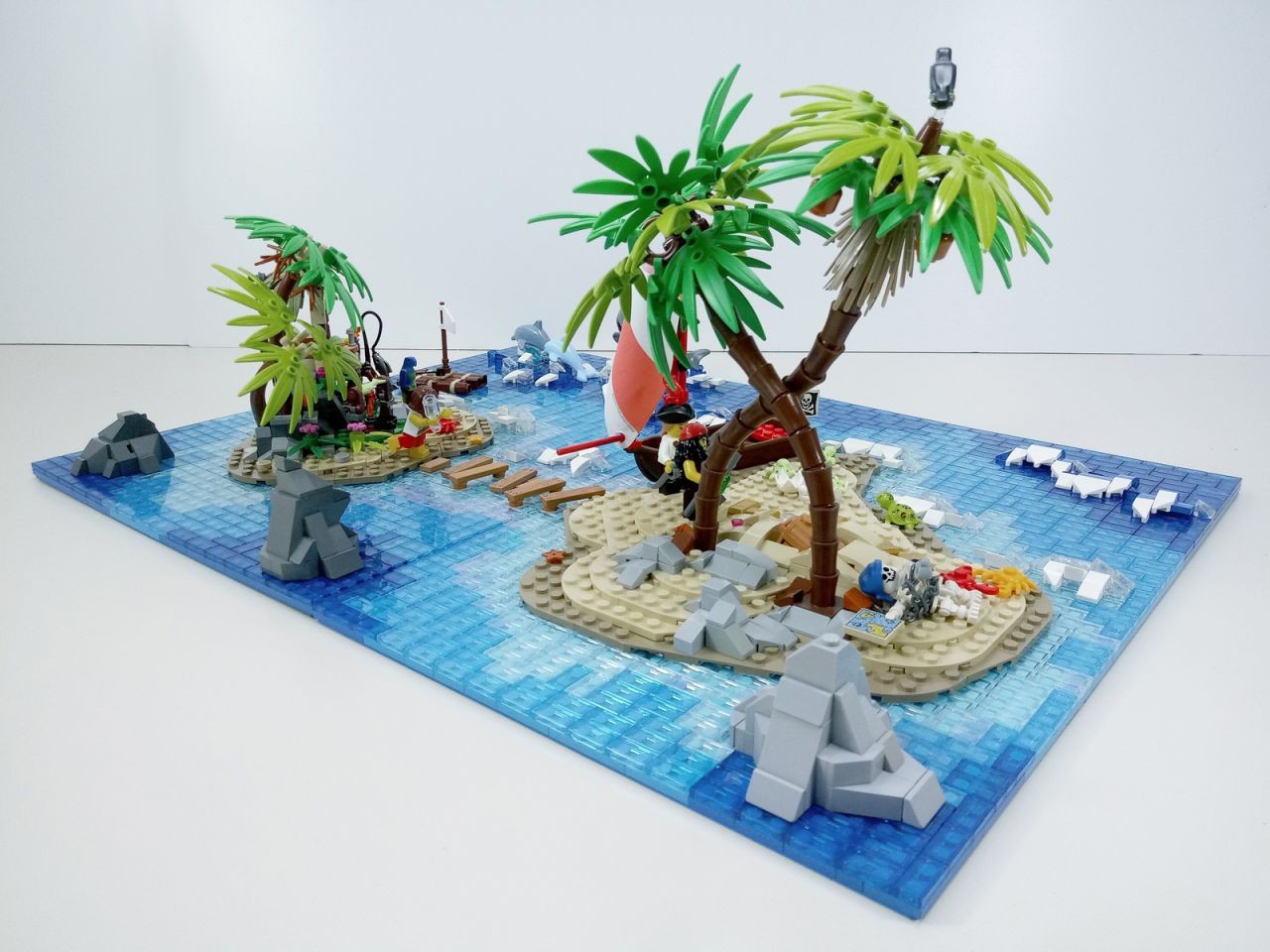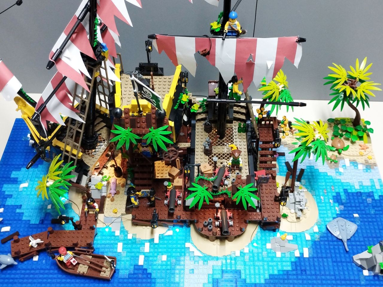 Il vero start al progetto del diorama è stato il set "Pirates of Barracuda Bay" (per me il miglior set di sempre) e subito dopo la scoperta di bricklink e la partecipazione ad un contest "pirati" su un gruppo facebook con una MOC di una piccola "isola del tesoro". A quel punto avevo qualcosa da cui partire (nel frattempo avevo anche iniziato a realizzare delle barche più "credibili" rispetto alle prime rozze sperimentazioni) e quel "diavolo tentatore" di bricklink era sempre lì pronto a sopperire alla mia mancanza di pezzi...