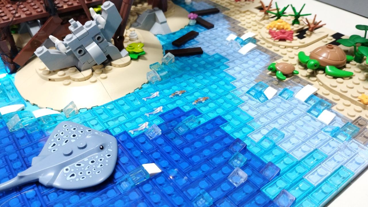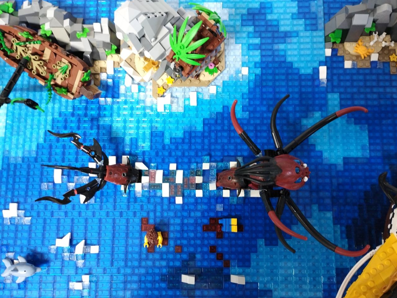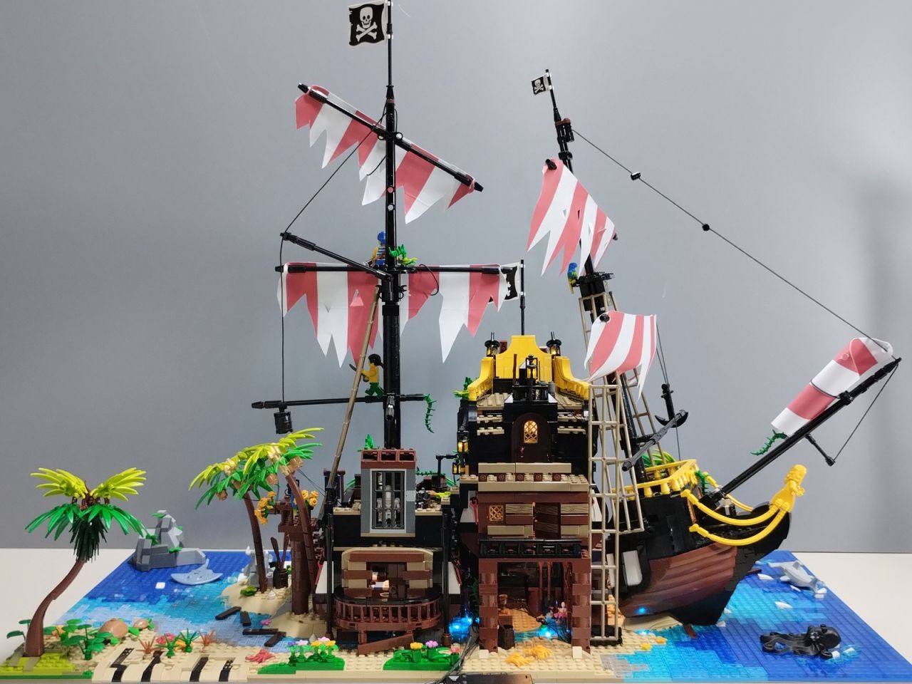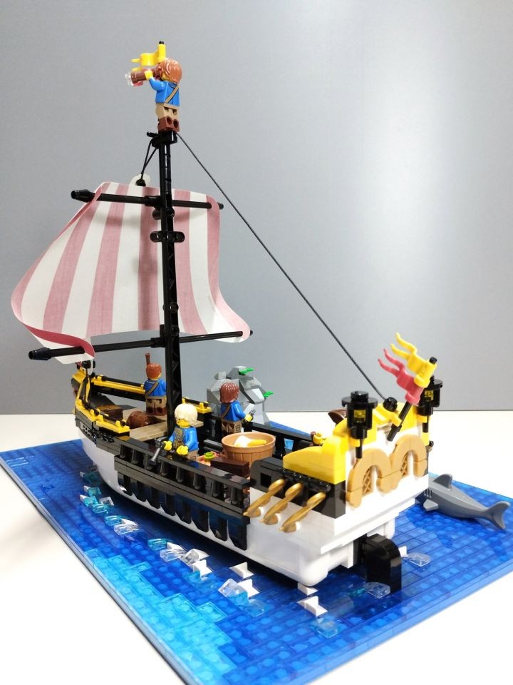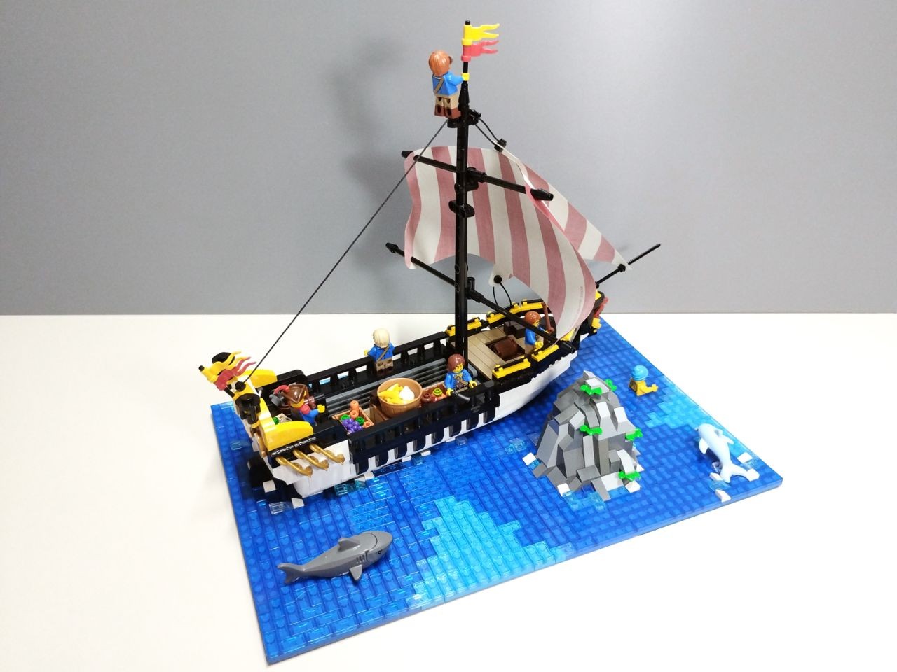 Il vero start al progetto del diorama è stato il set "Pirates of Barracuda Bay" (per me il miglior set di sempre) e subito dopo la scoperta di bricklink e la partecipazione ad un contest "pirati" su un gruppo facebook con una MOC di una piccola "isola del tesoro". A quel punto avevo qualcosa da cui partire (nel frattempo avevo anche iniziato a realizzare delle barche più "credibili" rispetto alle prime rozze sperimentazioni) e quel "diavolo tentatore" di bricklink era sempre lì pronto a sopperire alla mia mancanza di pezzi...
