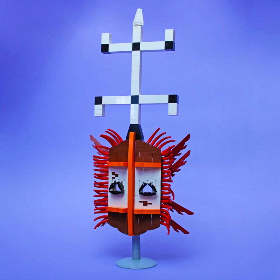 Riproduzione in LEGO di una Kanaga, maschera tradizionale della popolazione Dogon risiedente nell'attuale Mali.