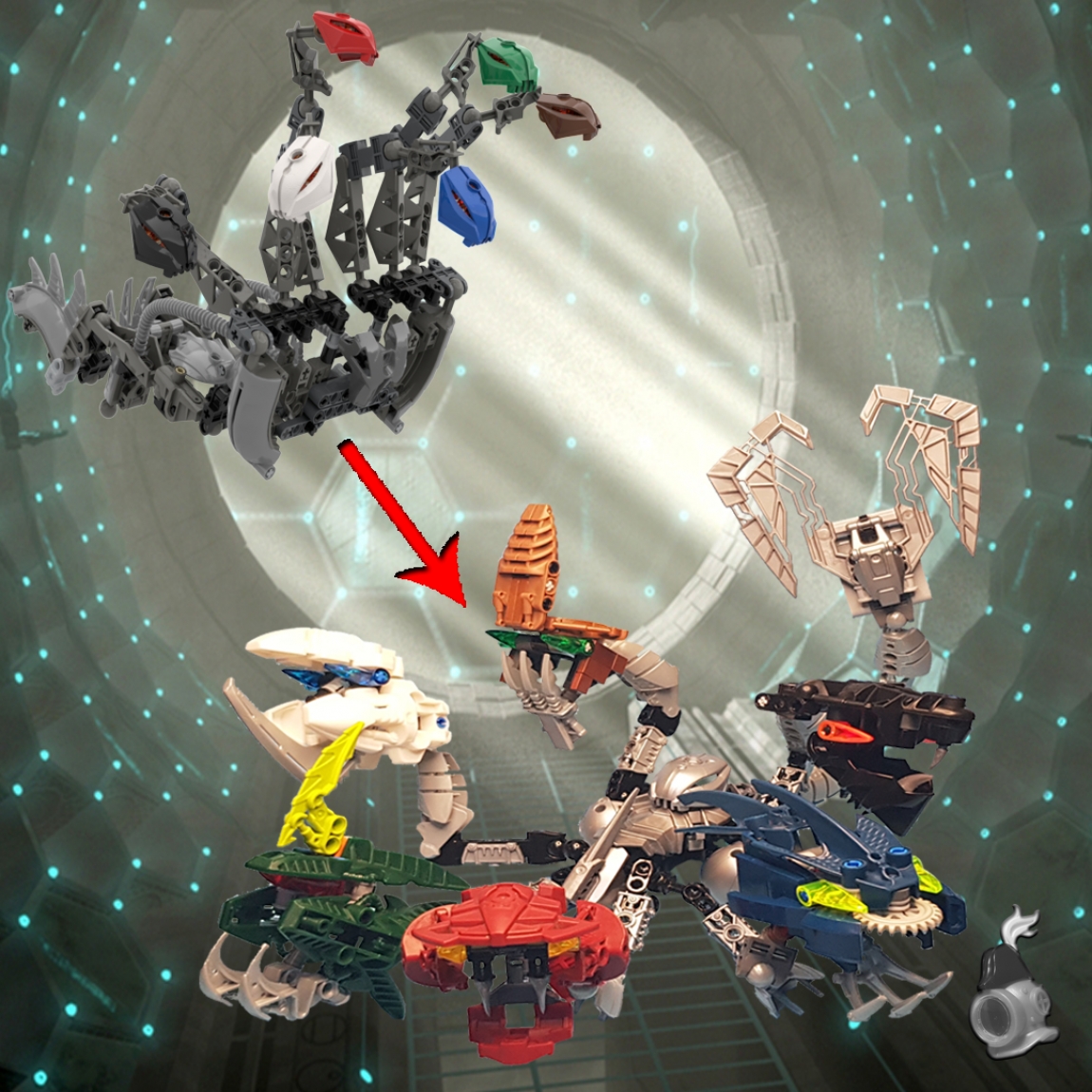 Collaborazione creata con altri sei moccer a tema Bionicle, il tema principale di questo lavoro sono le "Rahi" ovvero gli animali che compongo la fauna del mondo Bionicle. Ognuno di noi sette partecipanti ha scelto una delle numerosissime creature ufficiali e ha reinterpretato il soggetto secondo i propri gusti personali, io ho scelto la "Doom Viper". La Doom Viper è un serpente a sei teste e dotato di coda, siccome la moc ufficiale di questo animale ha sei teste tutte uguali ma con colori differenti ho deciso di fare sei teste tutte diverse, mantenendo però i sei diversi colori del soggetto originale. Nella foto in anteprima la moc in alto è il soggetto originale, quella in basso è la mia versione.
