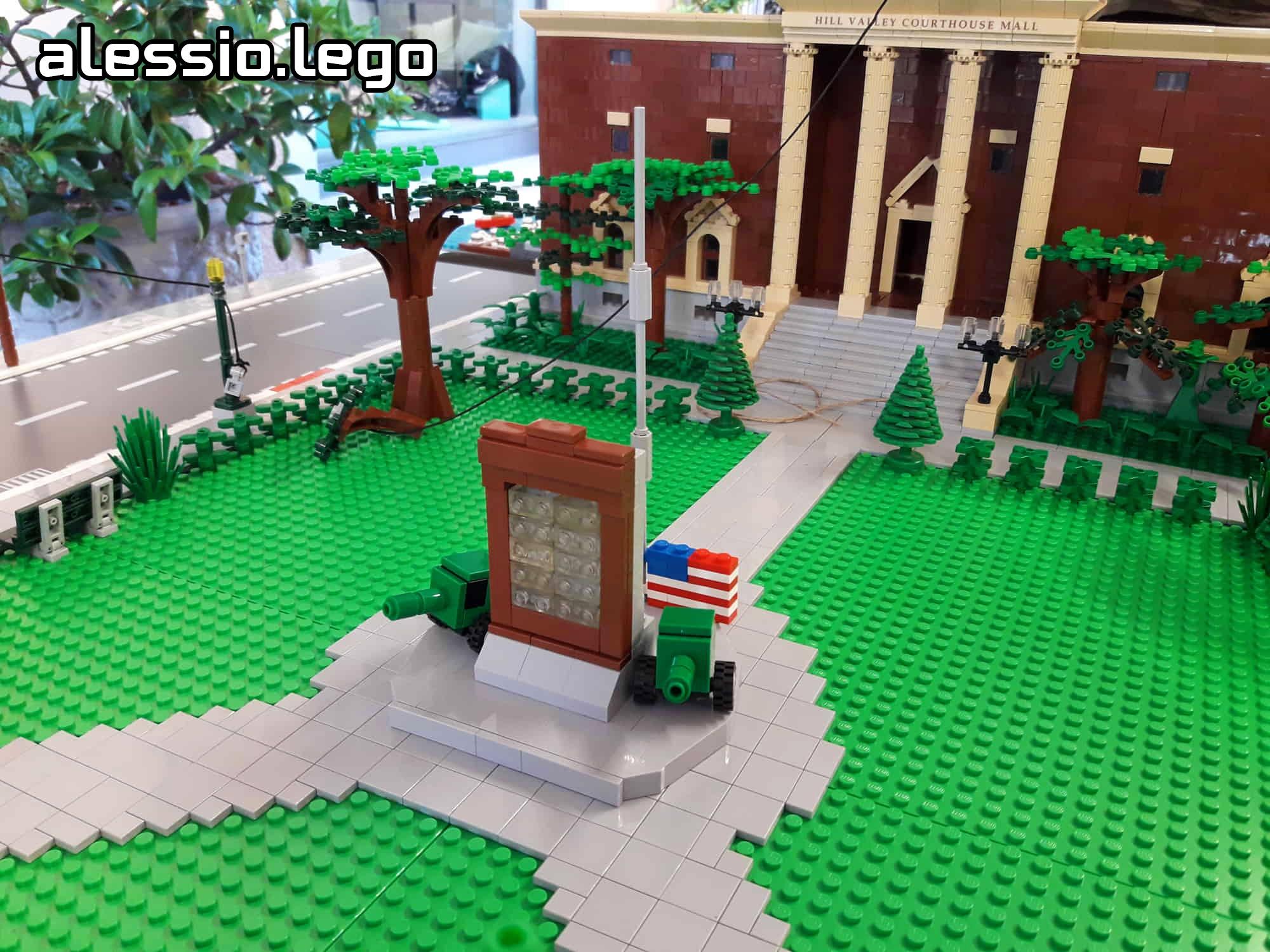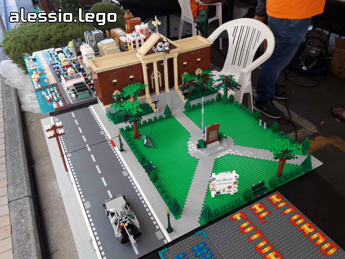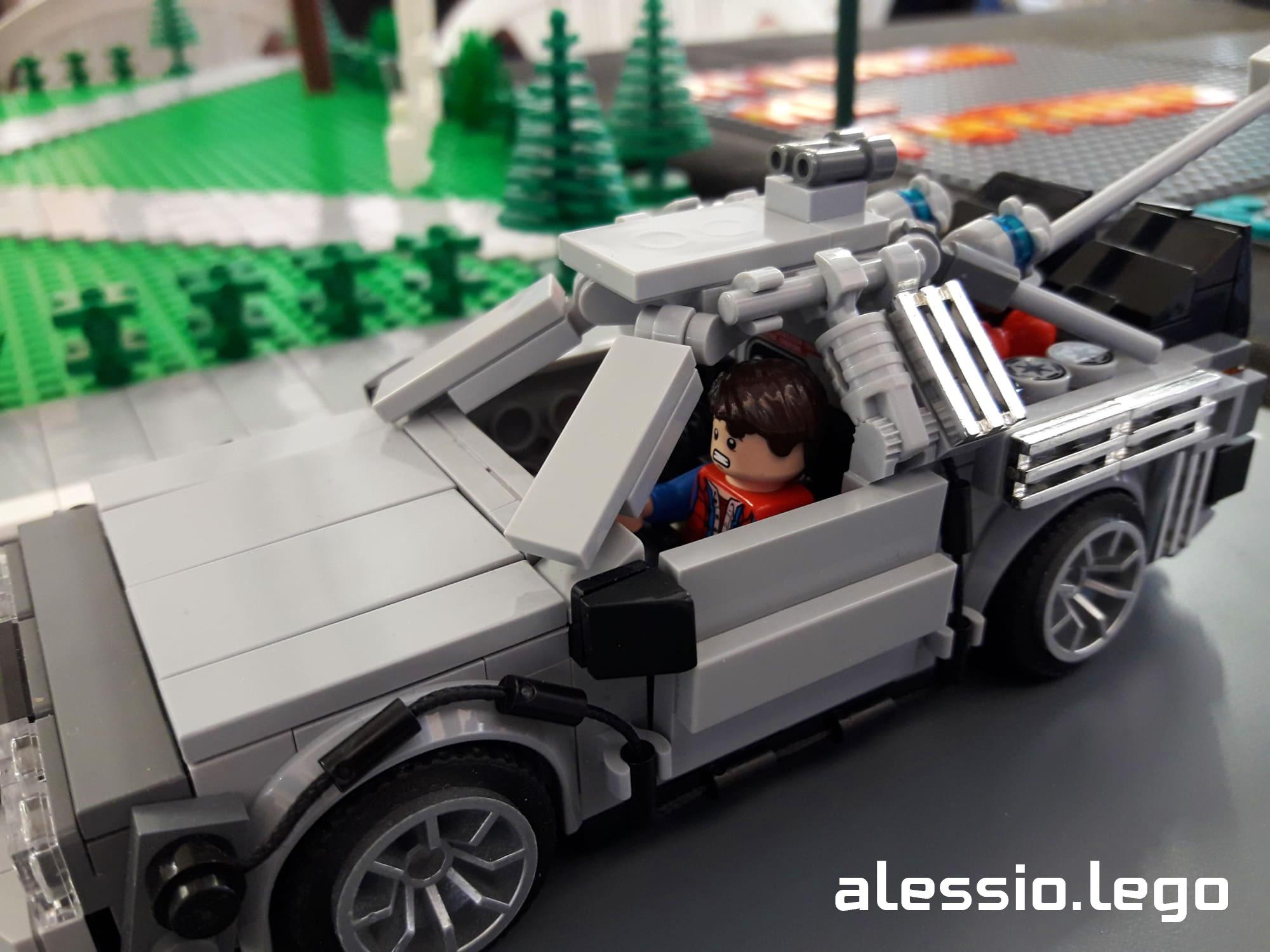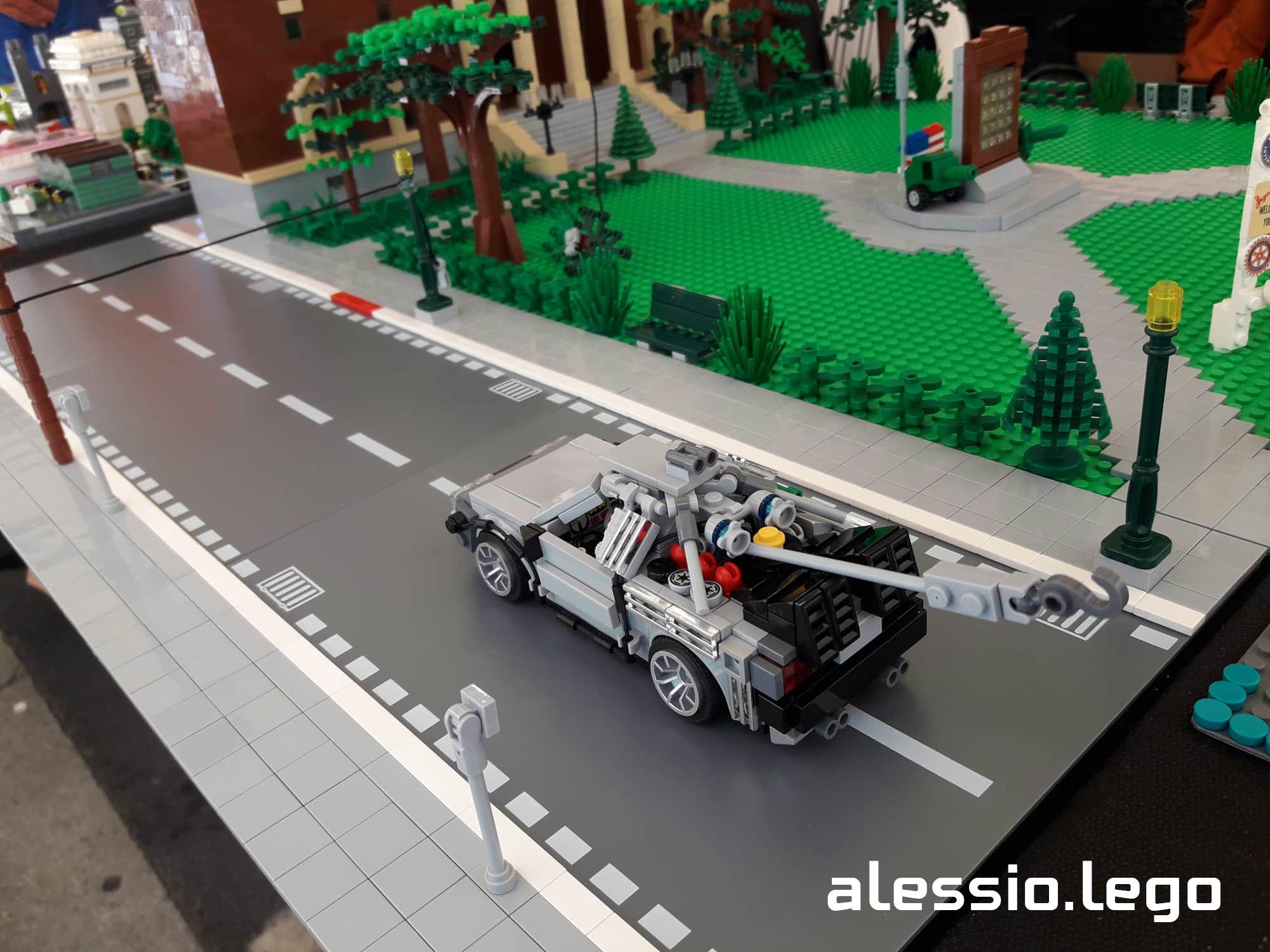 Mini diorama di Hill Valley del 1955 con la DeLorean macchina del tempo.
