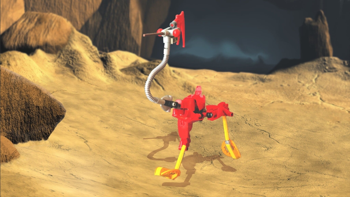 I rahi del 2001 includevano quasi sempre una play-function, e l'Husi non è un eccezione: girando l'ingranaggio sul set originale il suo collo cambiava angolazione. Ho deciso di omaggiare la funzione con un gearbox personalizzato che permette, girando l'ingranaggio sul retro del moc, di muovere le gambe simulando una corsa.