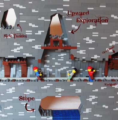 In questa moc viene rappresentata, sotto forma di spaccato, una miniera. Si possono notare varie strutture tipiche delle miniere, come per esempio le esplorazioni seguendo gli assi verticali, vari livelli e tunnel e uno scivolo del minerale.