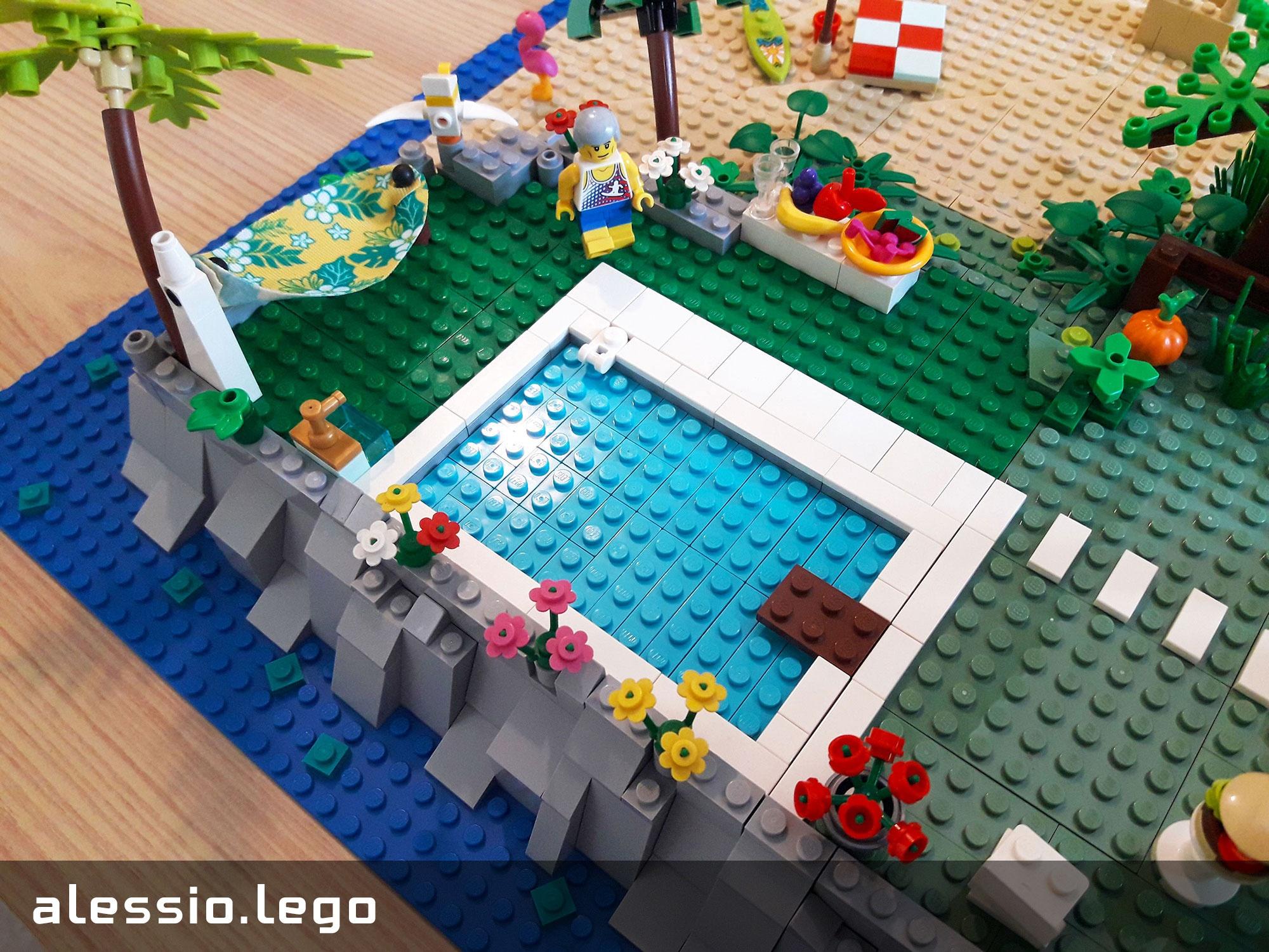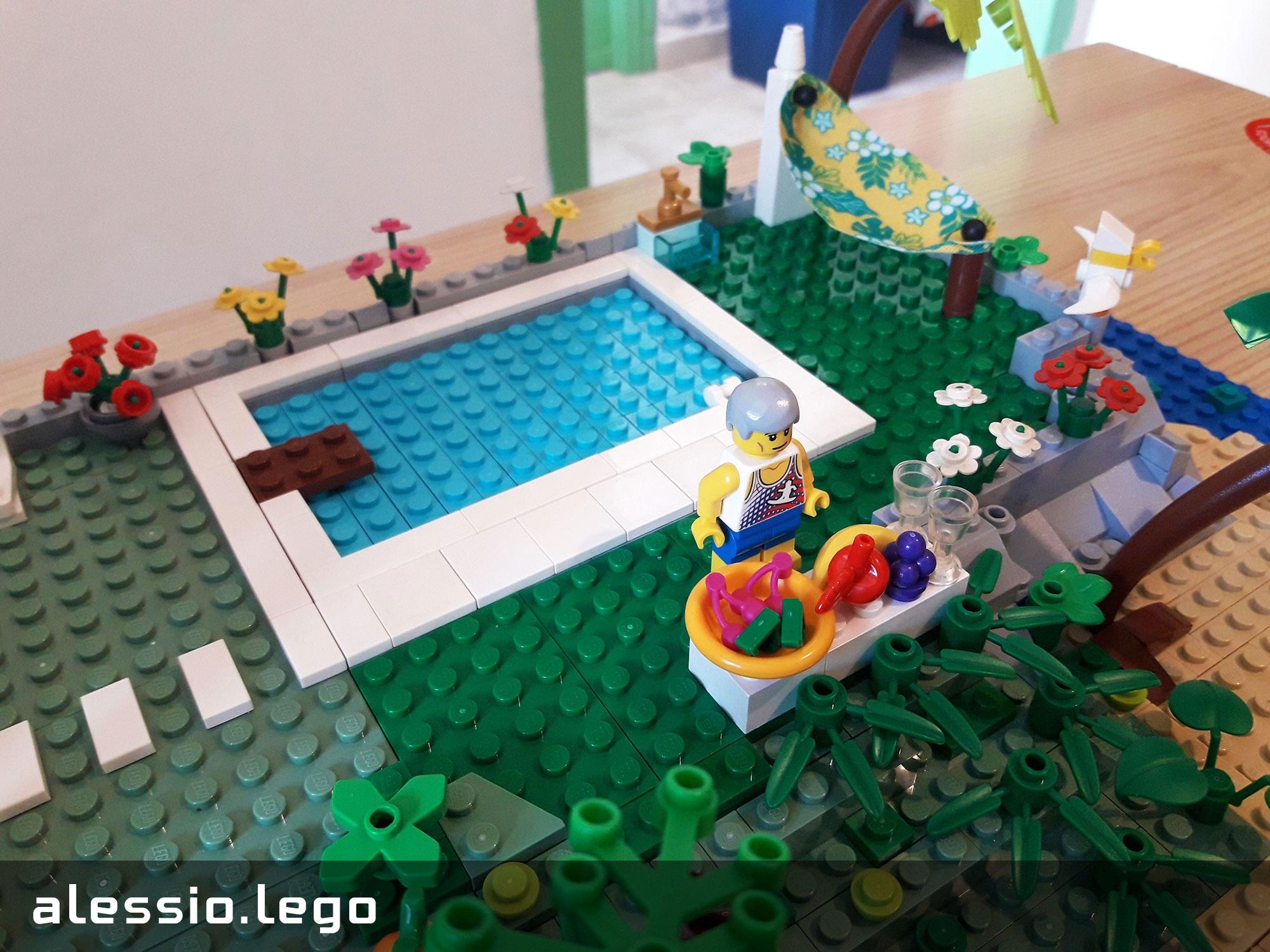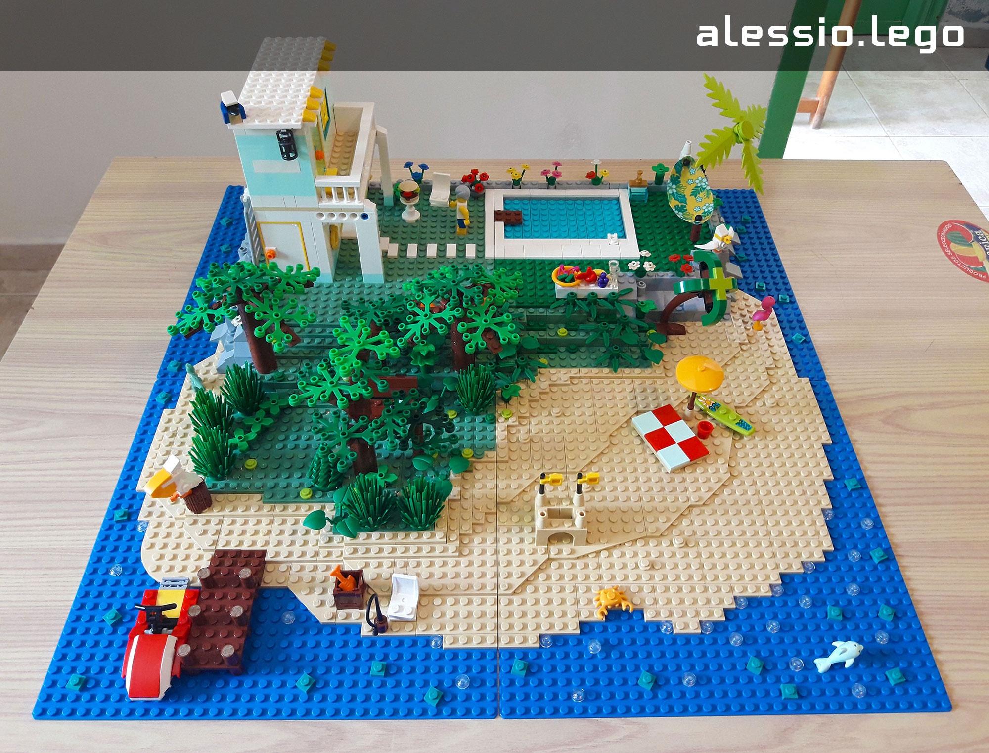 Questa MOC rappresenta la mia isola ideale, con la casa, la piscina, l'amaca, la spiaggia e la pineta. A farmi compagnia ci sono anche alcuni animali.