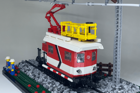 The locomotive that I created is a two-axle, diesel-electric powered motor tower car and it is used for maintenance of the catenaries.