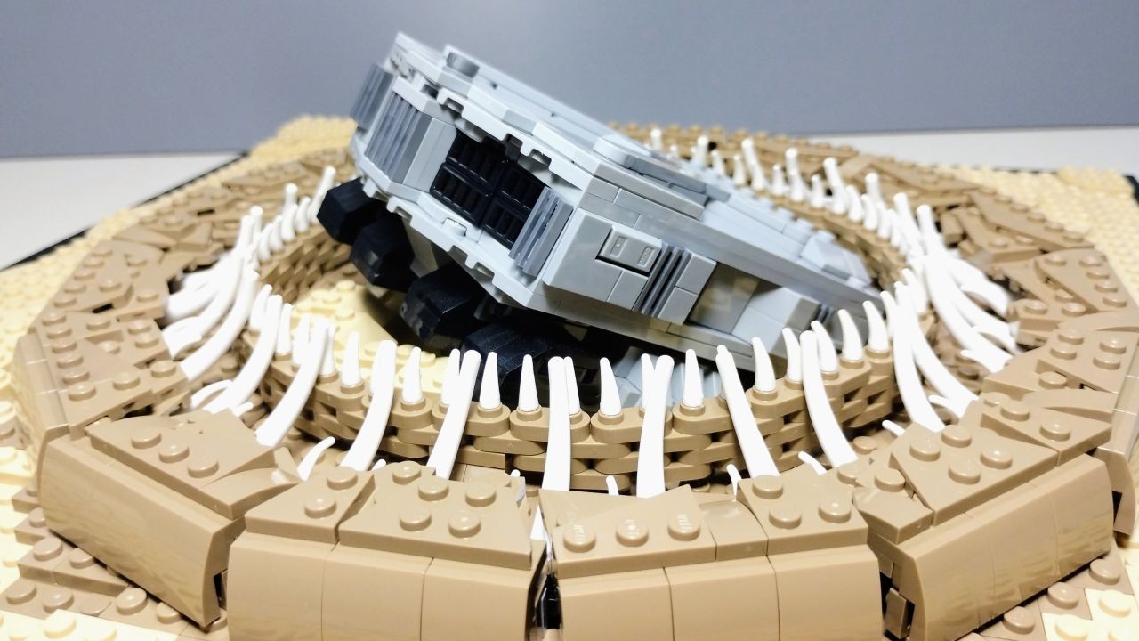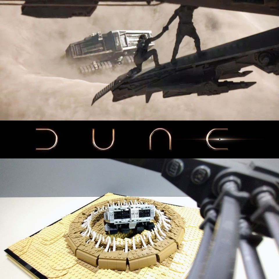 MOC che rappresenta una delle celebri scene del film "DUNE" di Denis Villeneuve, trasposizione cinematografica dall'epica saga di Frank Herbert.