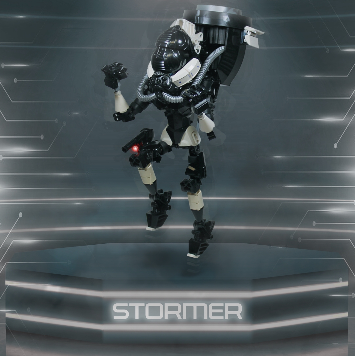 Moc costruita per la collab Hero Factory a tema Spec Ops. Ogni partecipante deve ricreare uno dei personaggi principali della serie Hero Factory Breakout come se fosse il membro di una squadra speciale, ogni personaggio avrà quindi una determinata specializzazione. Il mio, Stormer, è basato sul set originale di Stormer XL 6230, siccome si tratta di un set dove il personaggio è gigante diventava poco pratico e difficile inserire un robottone di tale stazza all'interno di una squadra speciale così ho scelto di farlo diventare XL solo quando indossa il suo gadget speciale che utilizza per paracadutarsi direttamente sopra all'obbiettivo della sua missione.