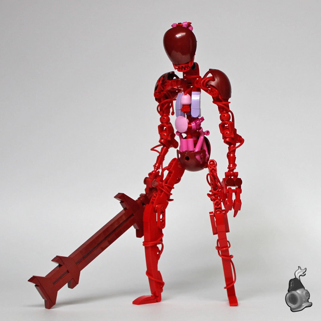 Infine il Re, volevo renderlo completamente organico con organi e vasi sanguigni a vista, allo stesso tempo volevo anche renderlo scheletrico per dare l'idea di una creatura rimasta senza pelle in poche parole. Per lui ho utilizzato solo ed esclusivamente diverse tonalità di rosso e di rosa, per il cuore ho preso la testa della Minidoll Sweet Mayhem di The Lego Movie 2, è l'unica Minidoll ad avere questa particoalre colorazione della pelle.