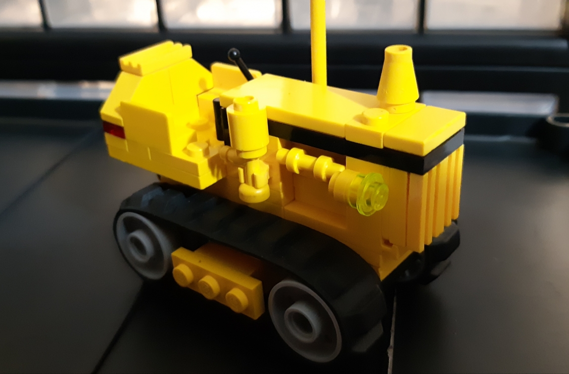 Preso spunto da internet... e con i consigli di esperti di Mocs...vi presento il mio primo trattore a cingoli...probabilmente in seguito subira' piccole modifiche..altrimenti che Lego Mocs sarebbe?