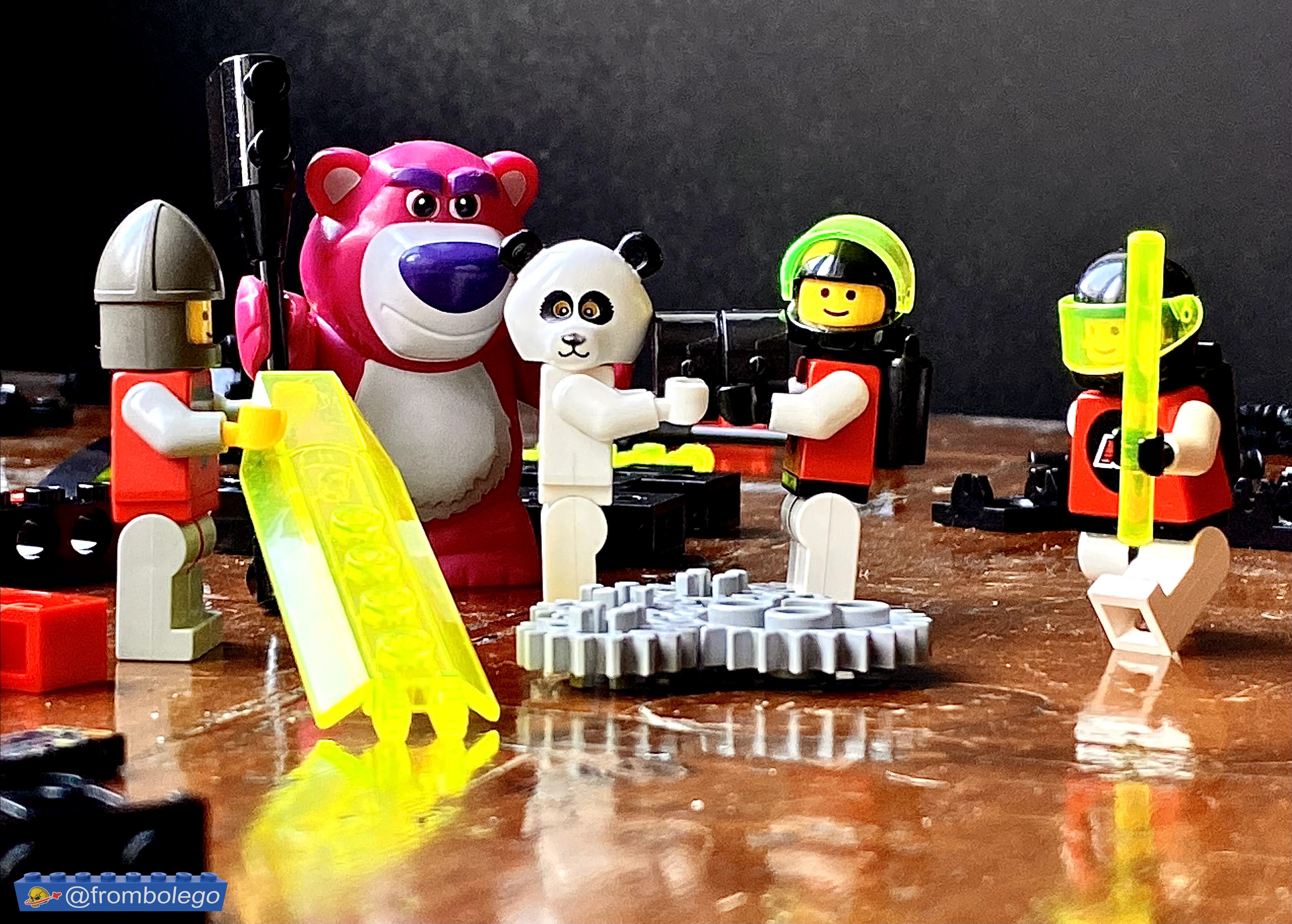Ricordo che avevo visto la minifig di Lotso (ho scoperto chi era solo in seguito, tanta è la mia cultura disney) in un diorama Castle in cui c'era questo orso con l'alabarda sulla porta di una torre. Così ho pensato che era perfetto per fare l'antagonista dell'eroe, l'arcinemico che incombe sempre. Finanche sulle remote vette.