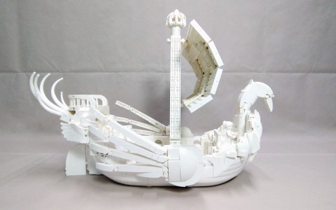 D'argento tessute le vele; d'argento eran pure le lanterne, e la prua in forma di cigno, e la luce sulle bandiere."
