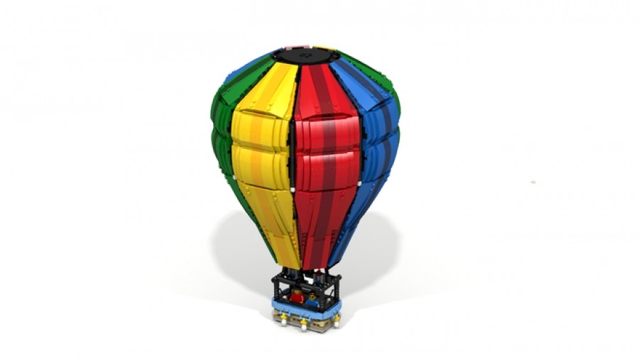 The model represents a classic hot air balloon carrying two people and its measurements try to replicate the shape and proportions of a real balloon. For this reason the model itself is quite big. In order to reduce its weight, the balloon has an internal structure made of Technic bricks. The structure is composed by one central pylon and eight radial arc beams. Each piece of the envelope (the colored part) is connected to one of these eight braces. The stiffness of the structure is obtained with diagonal beams. The colors chosen for the envelope are eight and are the most common used in hot air balloons. Despite the dimension of the model, the building process is quite simple and repetitive. In fact both the internal structure and the envelope are modular parts. I put much care in the creation of the model, chosing the best angles in orde to avoid any gap between the bricks in angular connections.