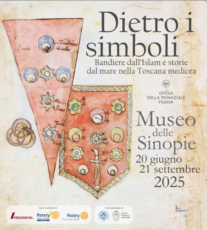 Dietro i simboli. Bandiere dall'Islam e storie del mare nella Toscana medicea , realizzata da Opera della Primaziale Pisana con il contributo di Fondazione Pisa Rotary Club di Pisa e Rotary Club Pisa-Galilei ed il patrocinio della Scuola Normale Superiore e l' Università di Pisa . L'appuntamento è previsto per venerdì 20 giugno alle ore 17.00 presso il Museo delle Sinopie . Insieme al Presidente Maestrelli saranno presenti i curatori Andrea Addobbati , Gianfranco Adornato , Stefano Bruni e Giuseppe Petralia ed i rappresentanti degli enti sostenitori.