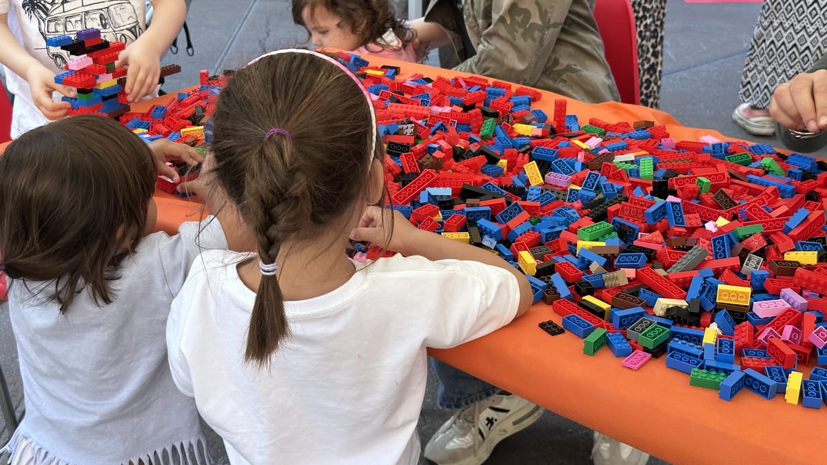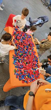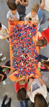 Vieni a giocare con noi con tanti mattoncini LEGO di tutti i colori.