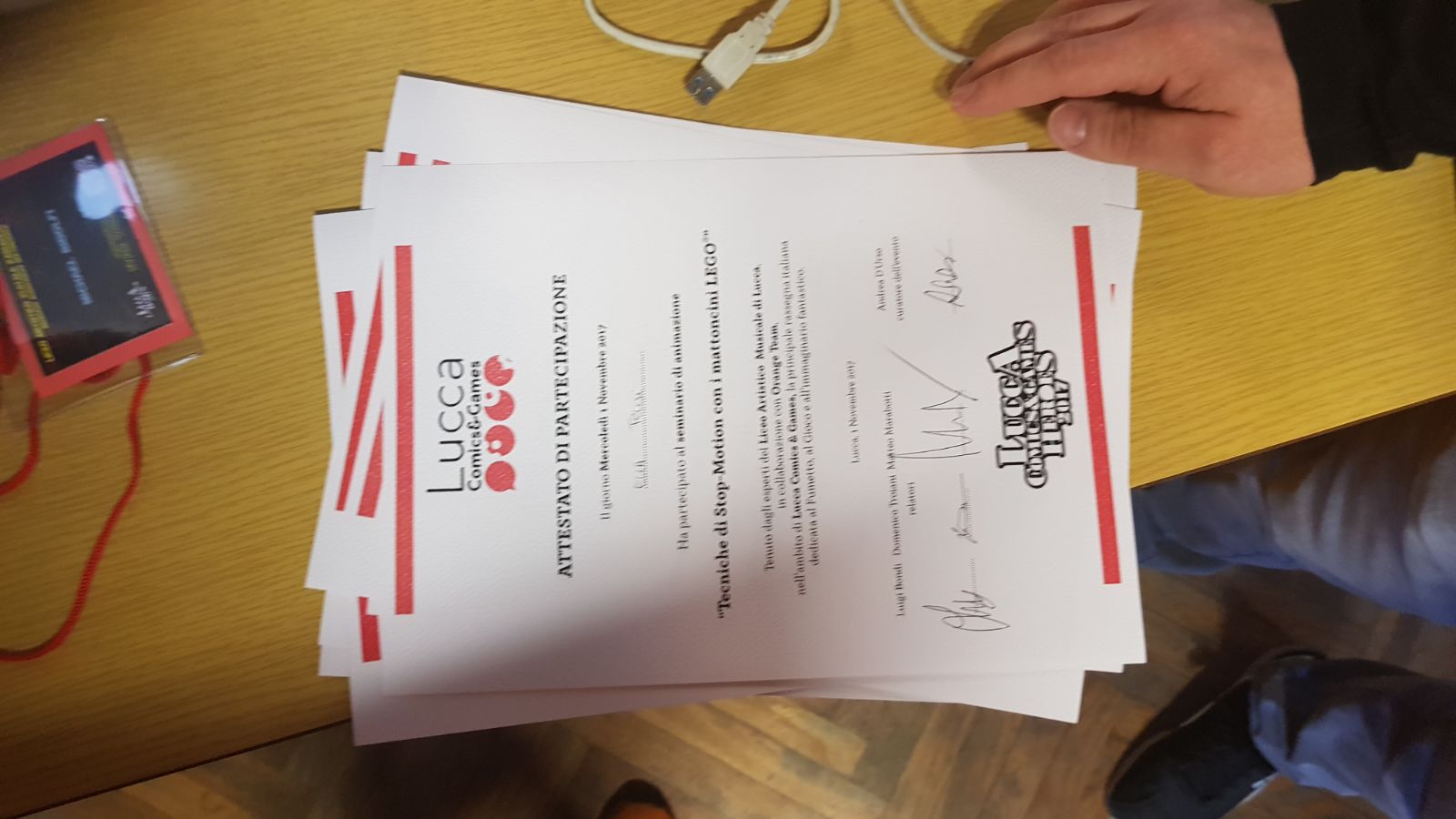 - Mercoledì 1 novembre, ore 14.00-16.00 Tecniche di stop-motion con i mattoncini LEGO® a Lucca Comics & Games 2017 a cura di Orangeteam LUG e Liceo Artistico Musicale di Lucca.