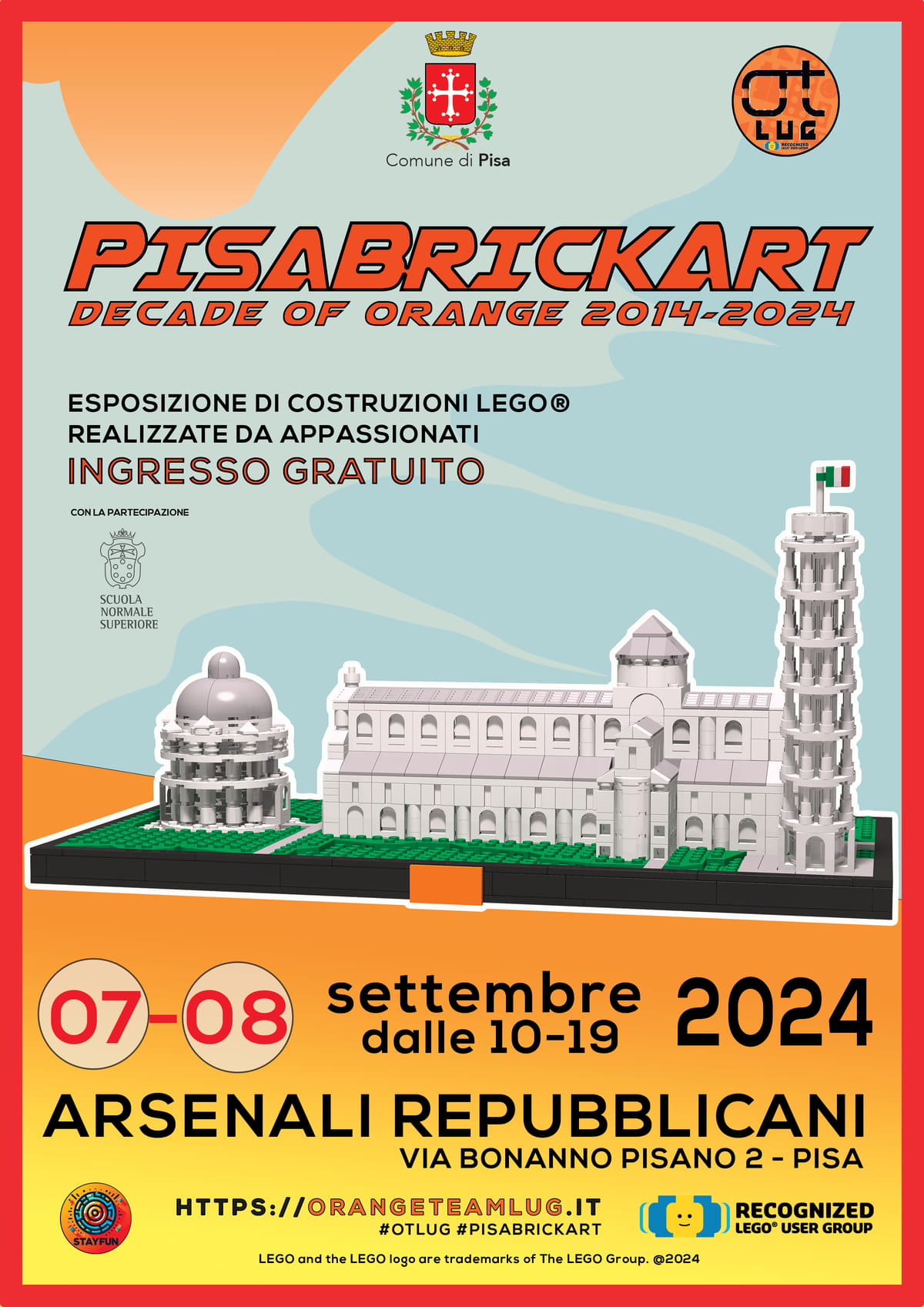 Un breve accenno di storia: quando nel 2014 abbiamo deciso di fondare il gruppo OrangeTeam, la cosa più naturale da fare è stata quella di organizzare il nostro primo evento di mattoncini LEGO®, il "PISABRICKART". La voglia di esporre e far vedere le nostre opere, metterci in discussione e creare qualcosa che non era stato ancora pensato è stata talmente forte che ha spinto tanti di noi uscire allo scoperto, mettersi in gioco e giocare. E così a cavallo del 2014/2015 siamo diventati un gruppo riconosciuto o rLUG, un gruppo di appassionati di opere in mattoncini riconosciuto da LEGO® Danimarca, con alle spalle l'organizzazione di un'esposizione di opere in mattoncini LEGO da oltre 9000 visitatori.