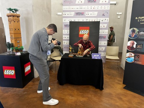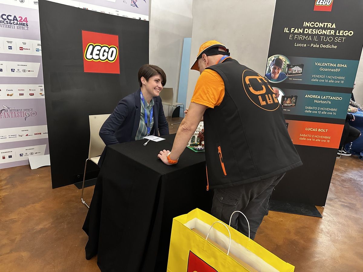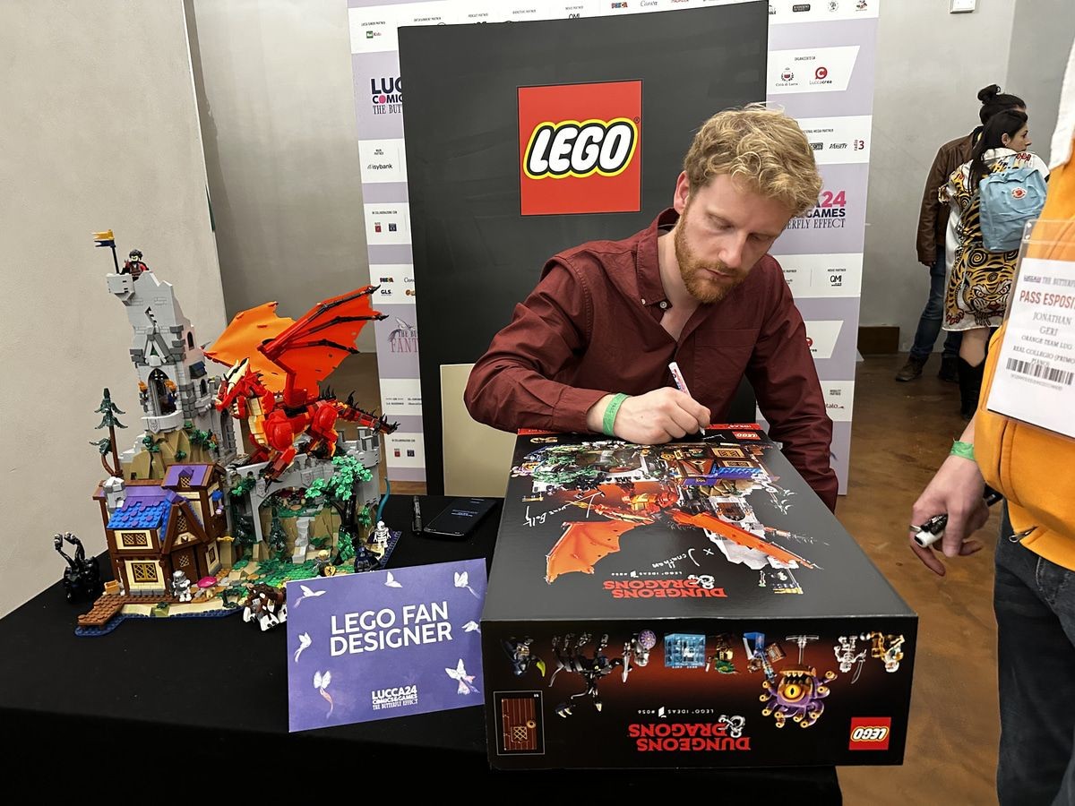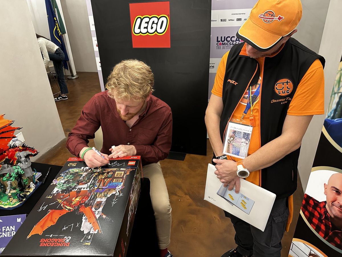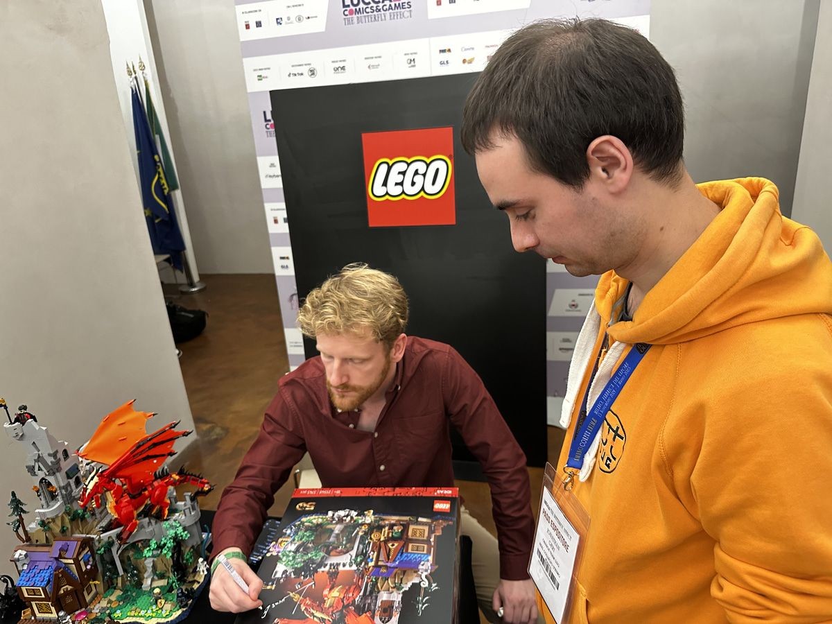 E per noi fan LEGO, le sorprese non finiscono qui con il negozio. Abbiamo potuto incontrare al Paladediche il primo LEGO Fan Designer italiano e designer del set LEGO® Ideas Baita, Andrea Lattanzio aka Norton74, il designer di LEGO® Ideas Dungeons & Dragons: Il racconto del Drago Rosso, Lucas Bolt aka BoltBuilds