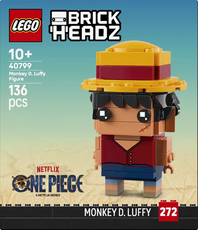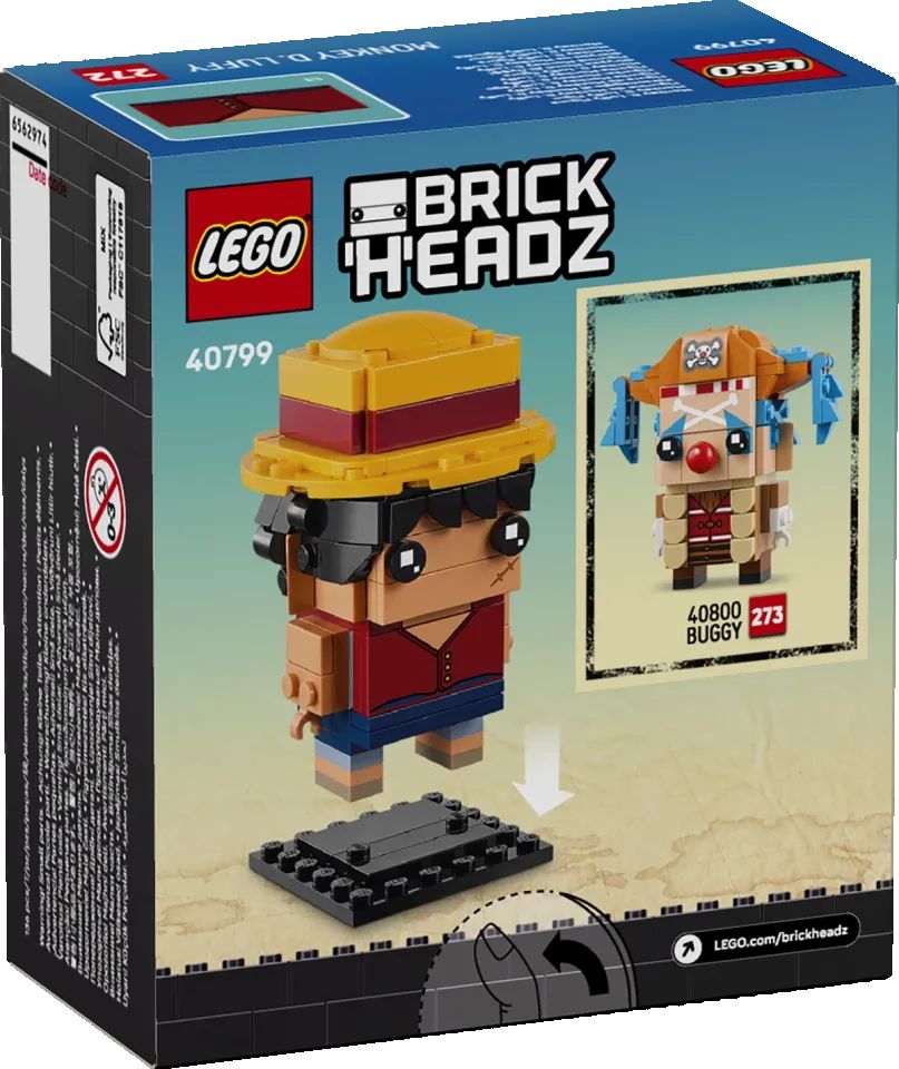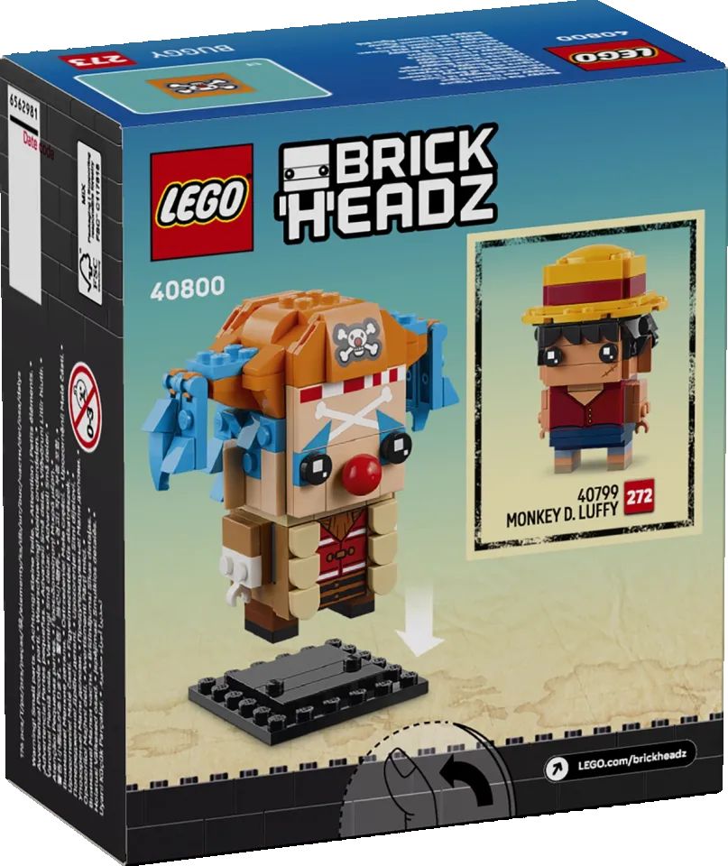 Per completare la nuova collezione di set LEGO ONE PIECE, il LEGO® BrickHeadz™ Personaggio di Monkey D. Luffy e il LEGO® BrickHeadz™ Personaggio Bagy il Clown saranno disponibili in esclusiva nei negozi LEGO e sul sito www.LEGO.com, per essere costruiti e utilizzatidai fan. Questi set celebrano alcuni dei personaggi più popolari della serie nelle loro forme più riconoscibili, rendendoli ideali per essere esposti.