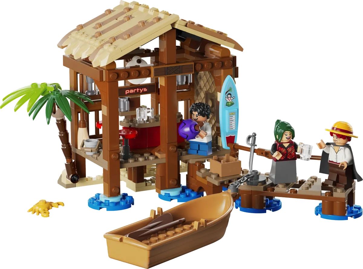 Il set da 299 pezzi mostra un giovane Monkey D. Luffy, Shanks e Makino, tutti in forma di Minifigure per la prima volta. Con un tetto staccabile, il negozio sulla spiaggia ha un interno divertente con molti accessori per giocare a gestire il negozio e intrattenere i clienti. I fan potranno trovare un poster "Wanted" da collezione.