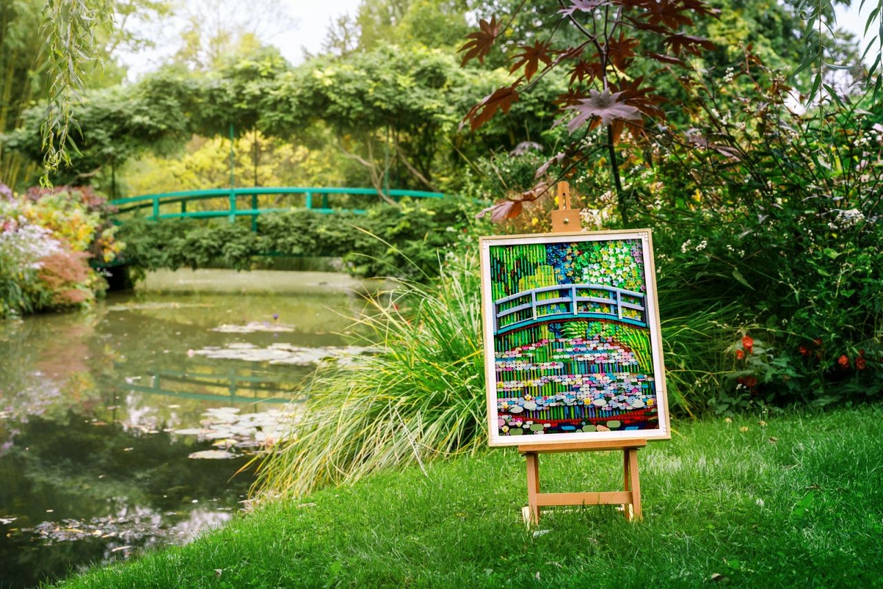 Altre fotografie scattate nel giardino di Monet a Giverny mostrano il set nel paesaggio che ha ispirato l'opera, offrendo agli appassionati una nuova visione del mondo creativo del famoso artista.