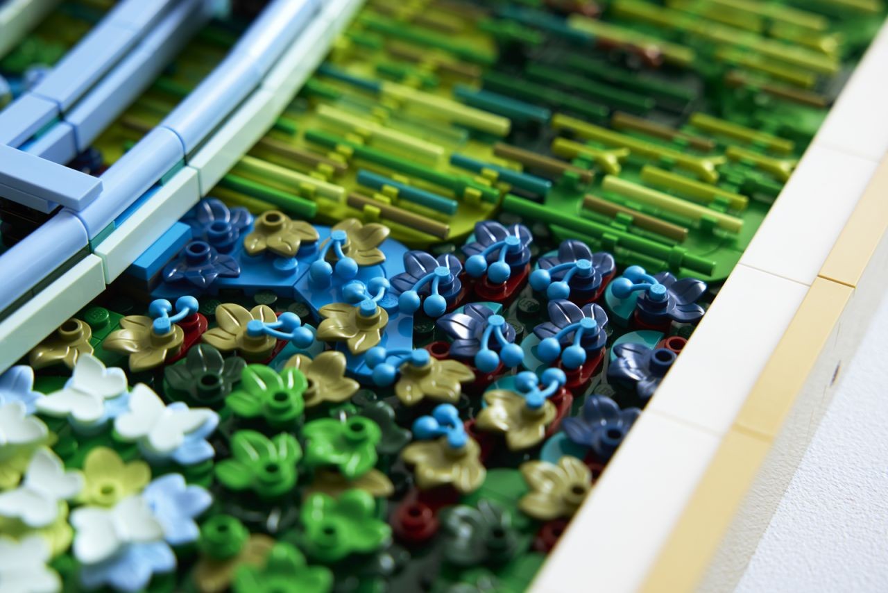 I costruttori scopriranno dettagli suggestivi all'interno del set. Alcune piastre all'interno "dell'acqua" presentano sottili variazioni di colore, che richiamano le pennellate vivaci e stratificate di Monet. Nella sezione centrale, una pennellata di luce diagonale, prominente nel dipinto originale poiché attraversa gli alberi, è stata ricreata con cura nel set con elementi più chiari che vanno dall'alto a destra al basso a sinistra.