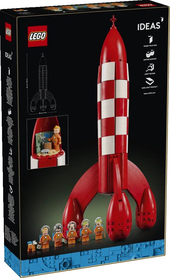 Il set LEGO® Ideas Razzo lunare di Tintin® (21367) è disponibile per la pre-ordine da oggi e sarà in vendita dal 1° aprile 2026 al prezzo di 159,99 euro su LEGO.com/Tintin e nei LEGO Store.