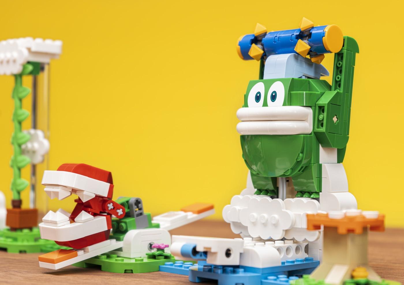 Altri set annunciati oggi includono: un set di espansione LEGO® Super Mario™ Casa dei regali di Yoshi, che offre ai fan un modo per salutare Yoshi, fare un giro sulla Giostra delle Delizie e collezionare frutti deliziosi per guadagnare monete. Sono stati rivelati e saranno disponibili dal 1° agosto anche il set di espansione LEGO® Super Mario™ Pinne di Stordino, il set di espansione LEGO® Super Mario™ Costume di Peach gatto e Torre ghiacciata, il set di espansione LEGO® Super Mario™ Scarpa del Goomba e il set di espansione LEGO® Super Mario™ Sfida sulle nuvole di Spike gigante.