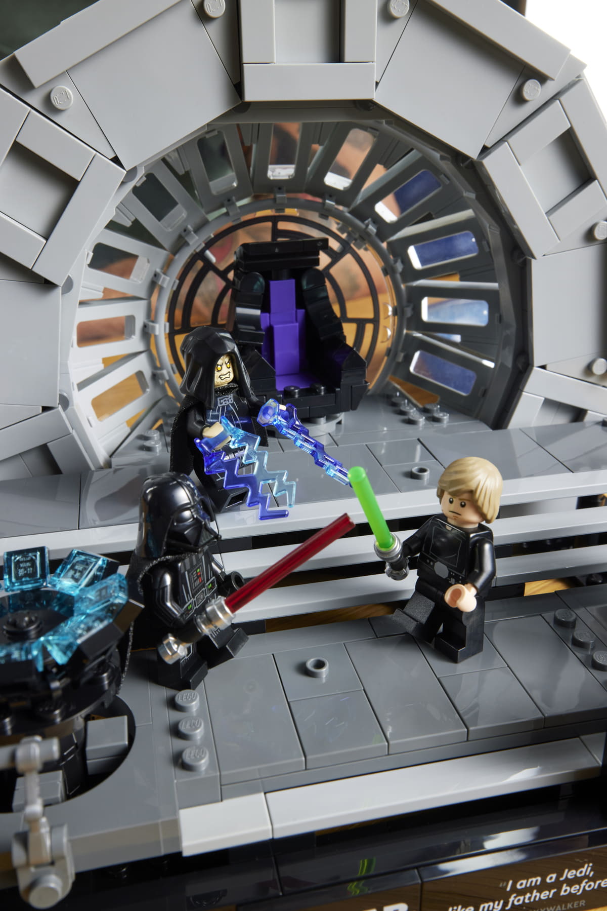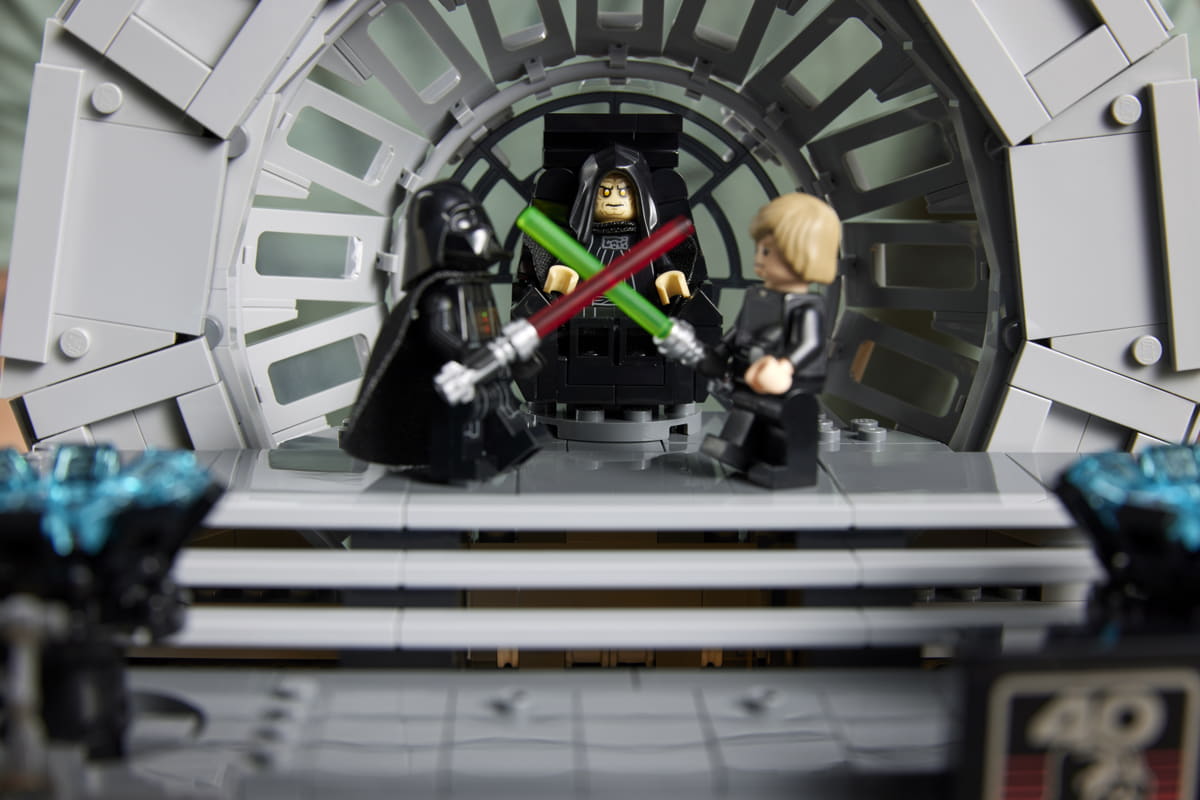 Nel set sono incluse anche tre minifigure con i personaggi Luke Skywalker™, Darth Vader™ (entrambi con le loro spade laser) e l'Imperatore Palpatine™, la cui spada laser e i fulmini Sith sono nascosti nella parte inferiore del modello. Le Minifigure possono essere posizionate in diverse posizioni sul diorama per replicare diversi momenti della scena.