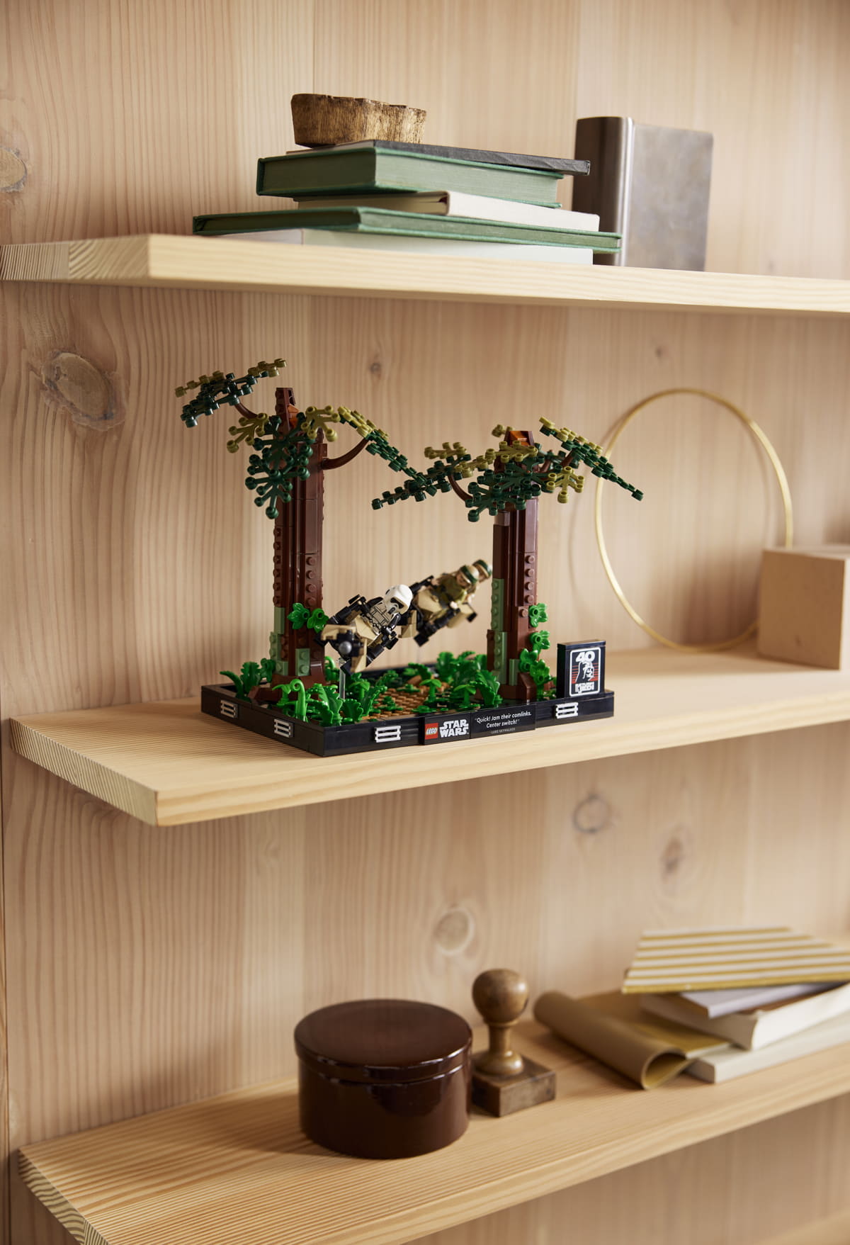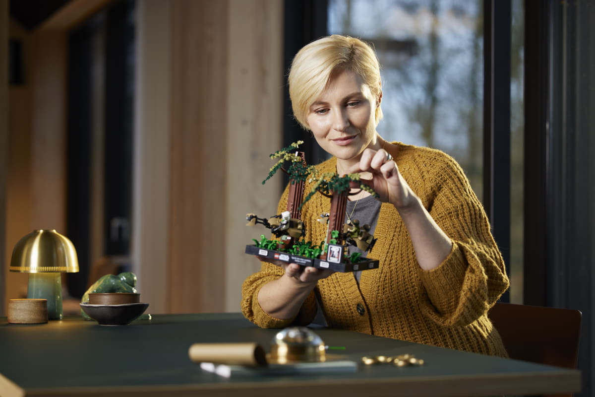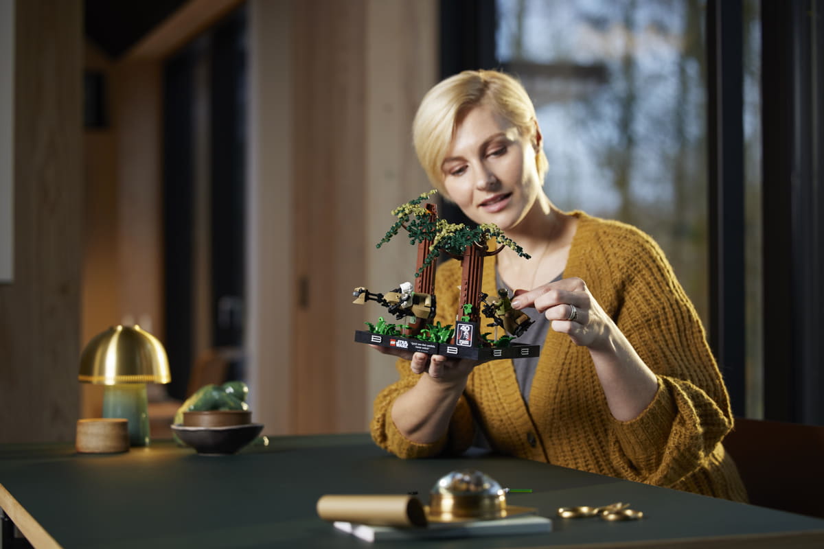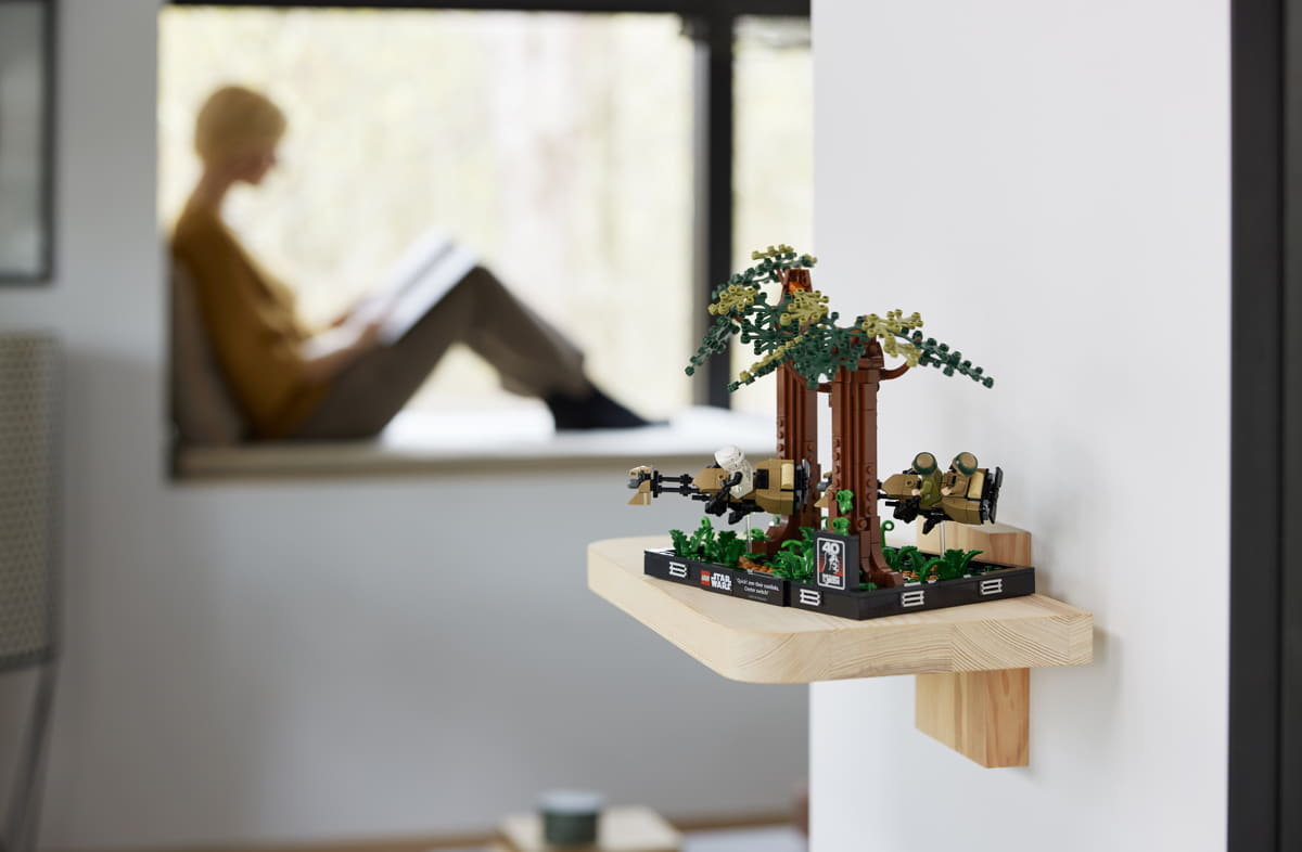 Per i fan in viaggio verso Endor, il diorama Endor Speeder Chase da 608 pezzi dà vita all'azione ad alta velocità tra il lussureggiante suolo della foresta, con Luke Skywalker™ che corre su una speeder bike tra gli alberi.