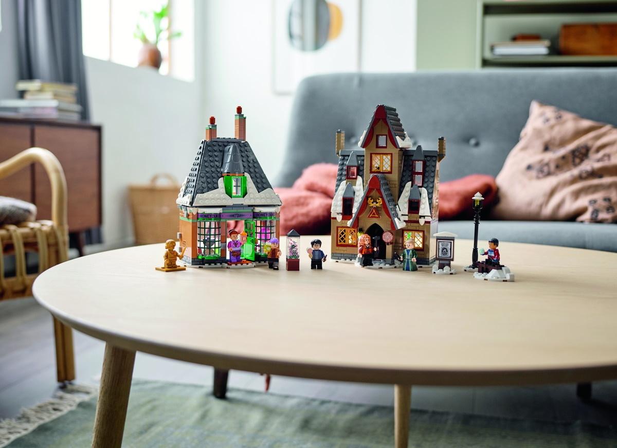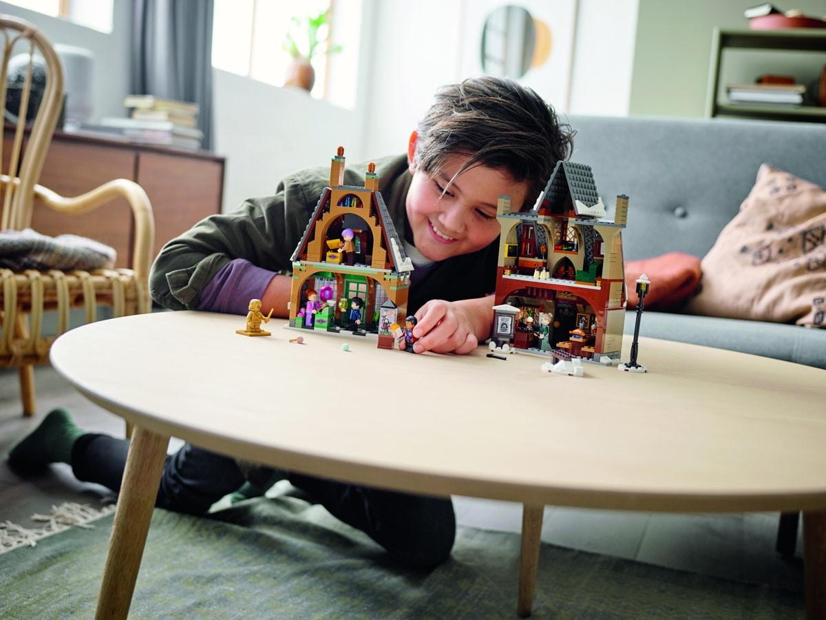 - Visita al villaggio di Hogsmeade™ LEGO® Harry Potter™ – Fai un giretto nel villaggio innevato di Hogsmeade per comprare degli stuzzicanti pallini acidi da Mielandia™ o ordinare una rinfrescante burrobirra ai Tre Manici di Scopa.