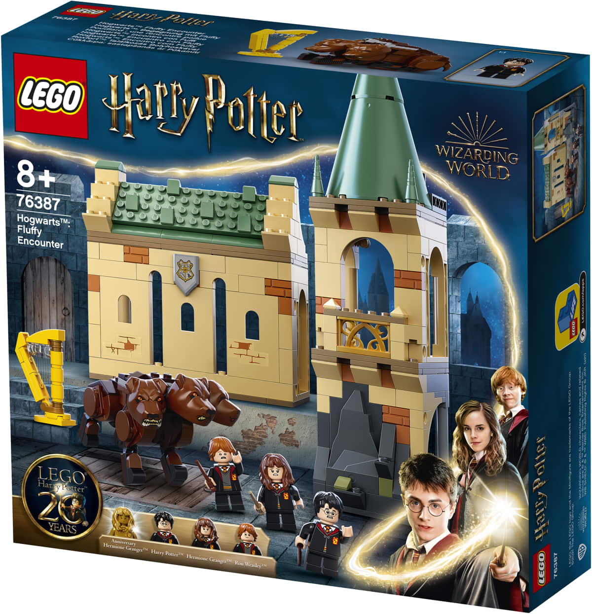 - 3 minifigure incluse: Harry Potter™, Hermione Granger™ e Ron Weasley™, più un’esclusiva minifigure di Hermione Granger™ color oro per commemorare il ventesimo anniversario della linea