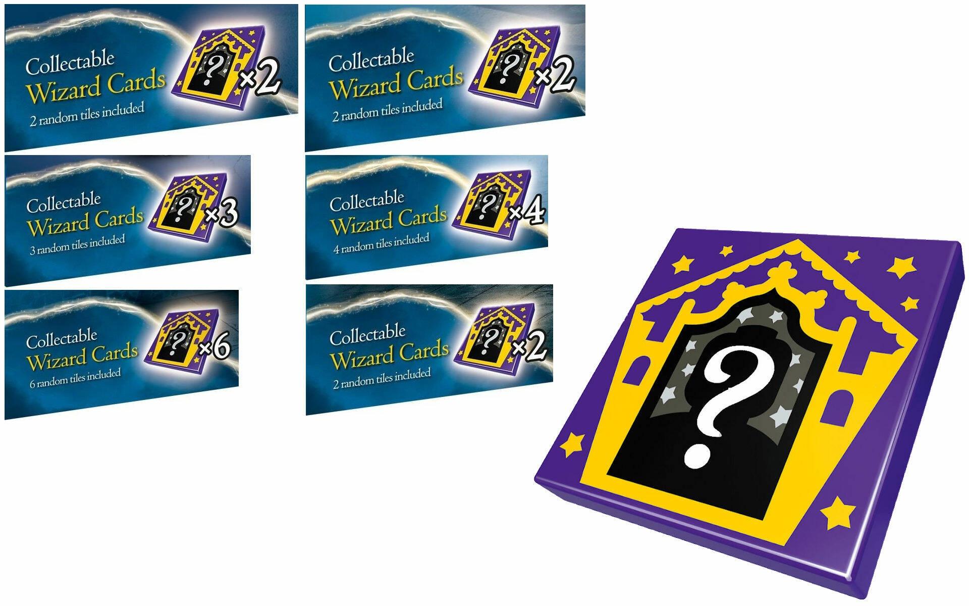 Ad esclusione dei set 76393 Harry Potter ed Hermione Granger e 76394 Fanny, la Fenice di Albus Silente, tutti gli altri contengono un certo numero di Wizard Card ciascuno, ovvero dei tile 2×2 stampati con grafica e soggetti random: