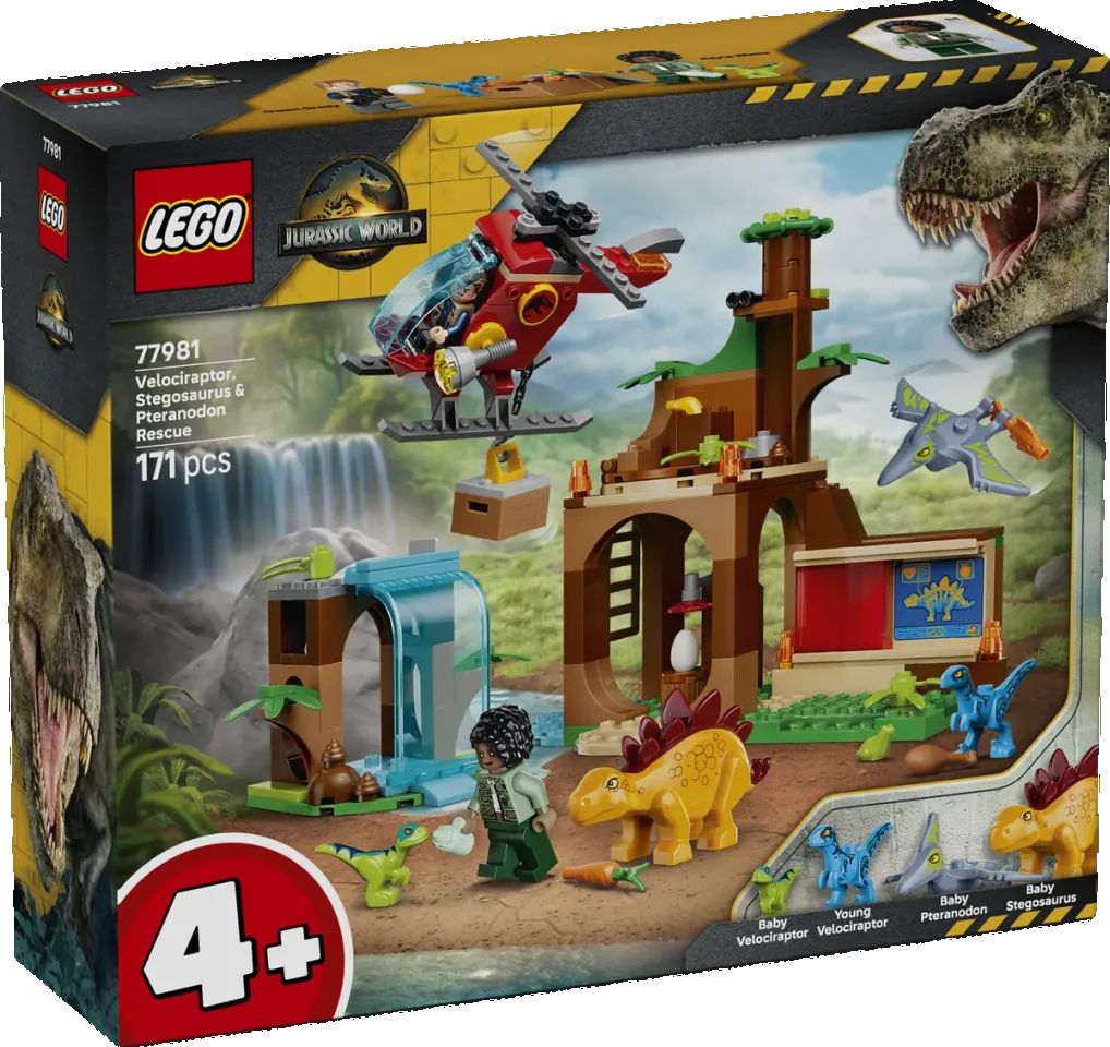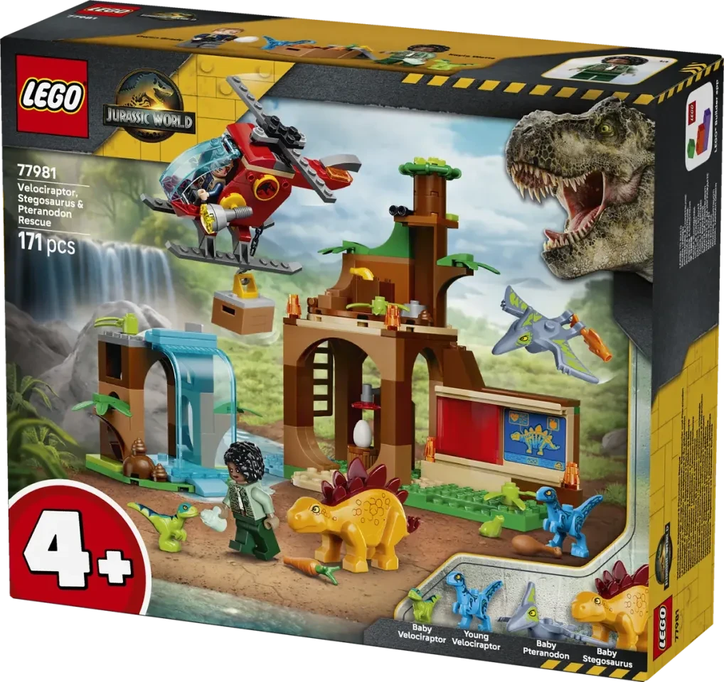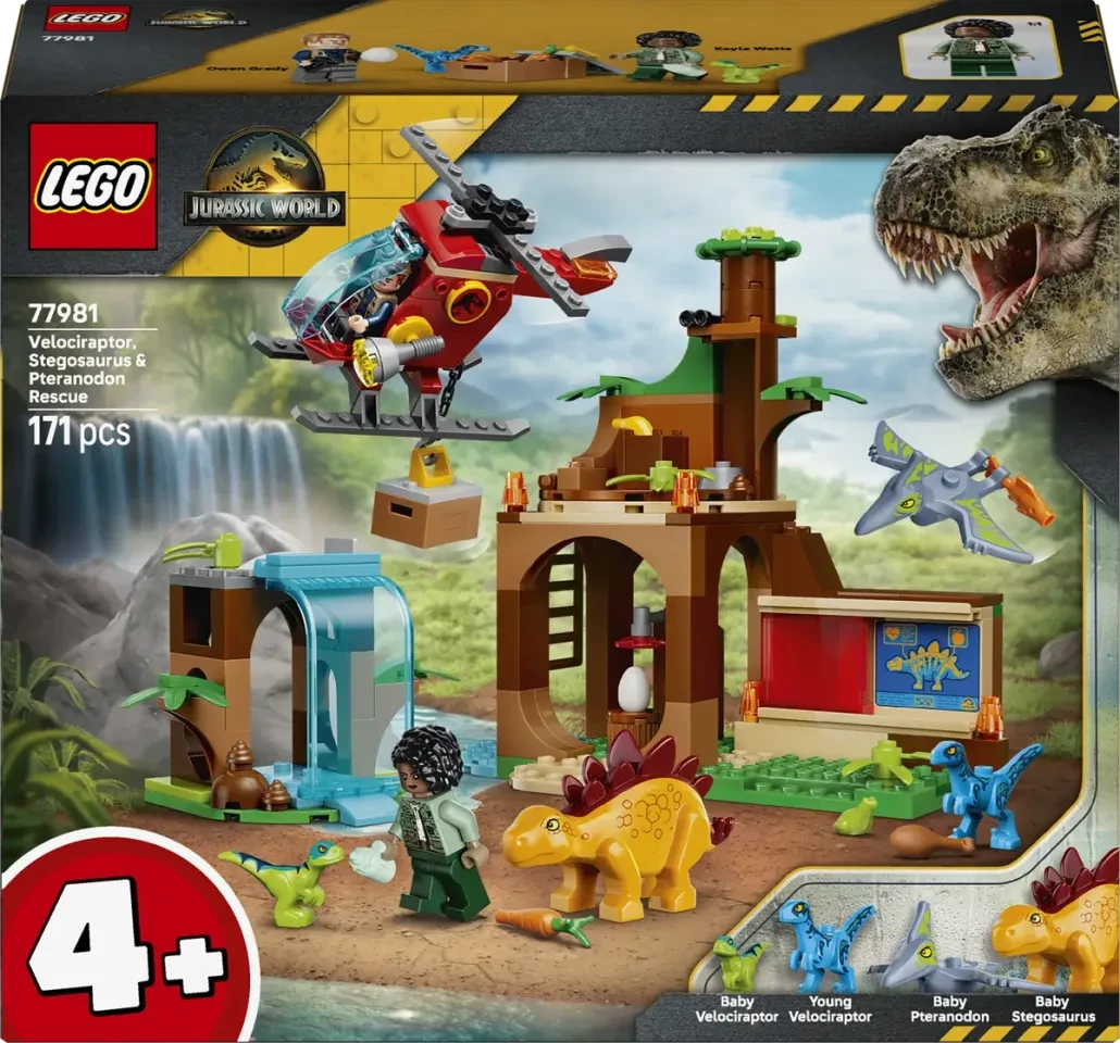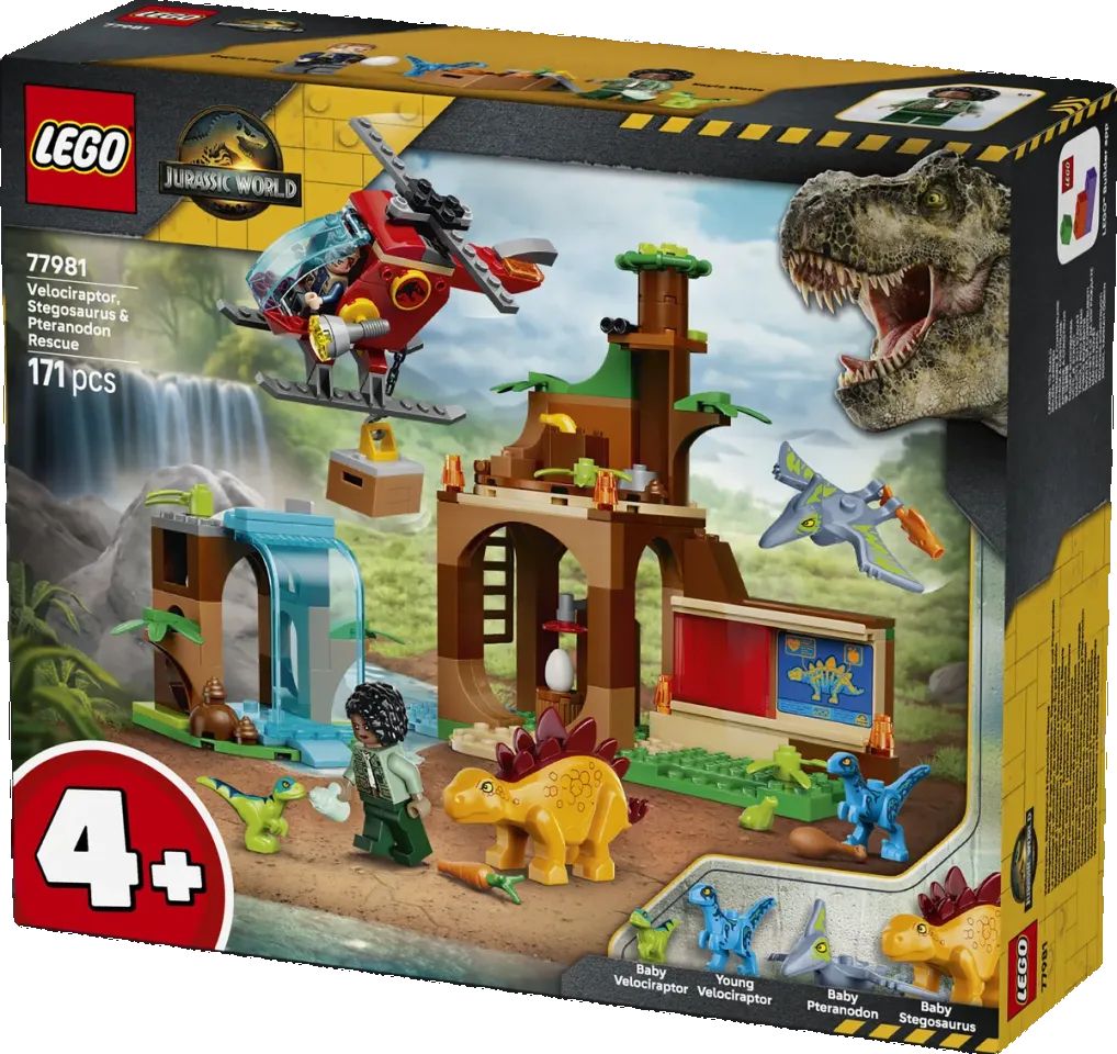 LEGO® Jurassic World Salvataggio di Velociraptor, Stegosauro e Pteranodonte (77981)