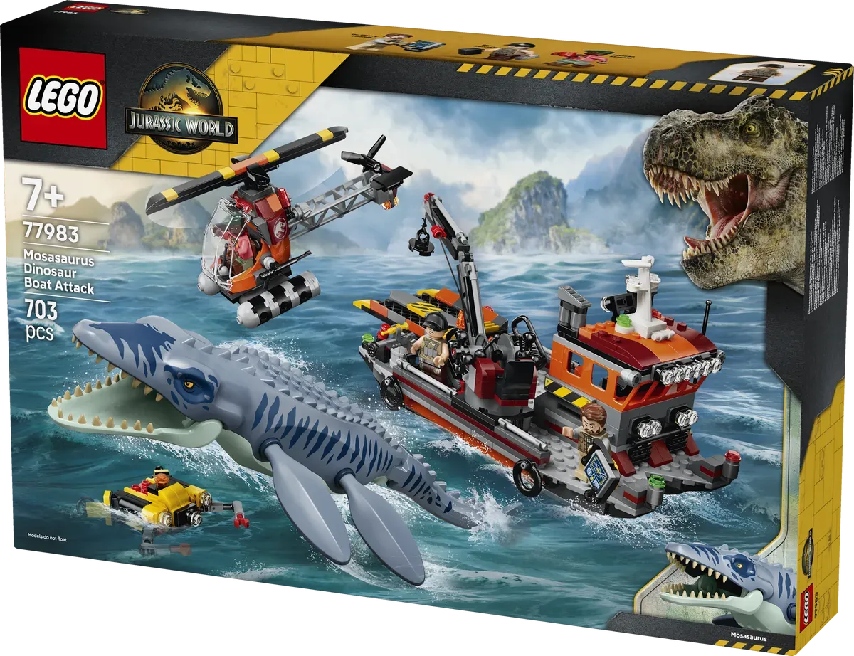 ●LEGO® Jurassic World Attacco alla barca del dinosauro Mosasaurus (77983), 7+