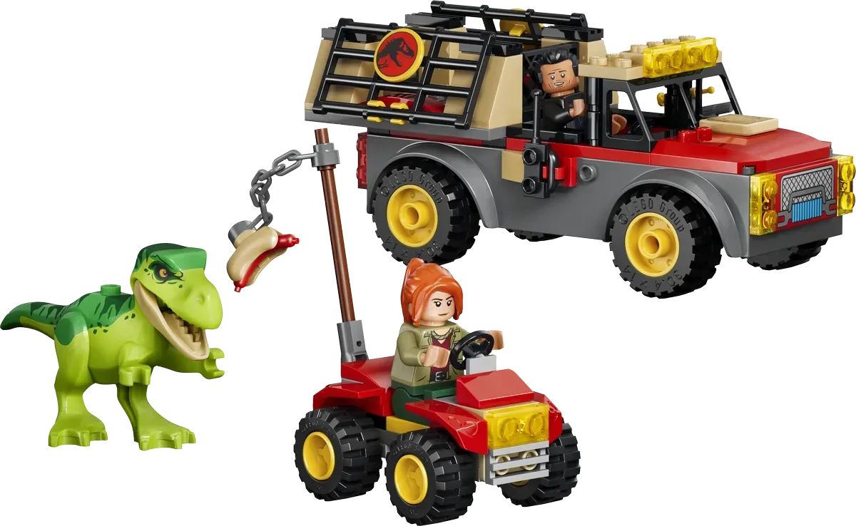 I piccoli dai 4 anni in su potranno mettere in salvo un curioso T.rex con un quad e un camion da trasporto.