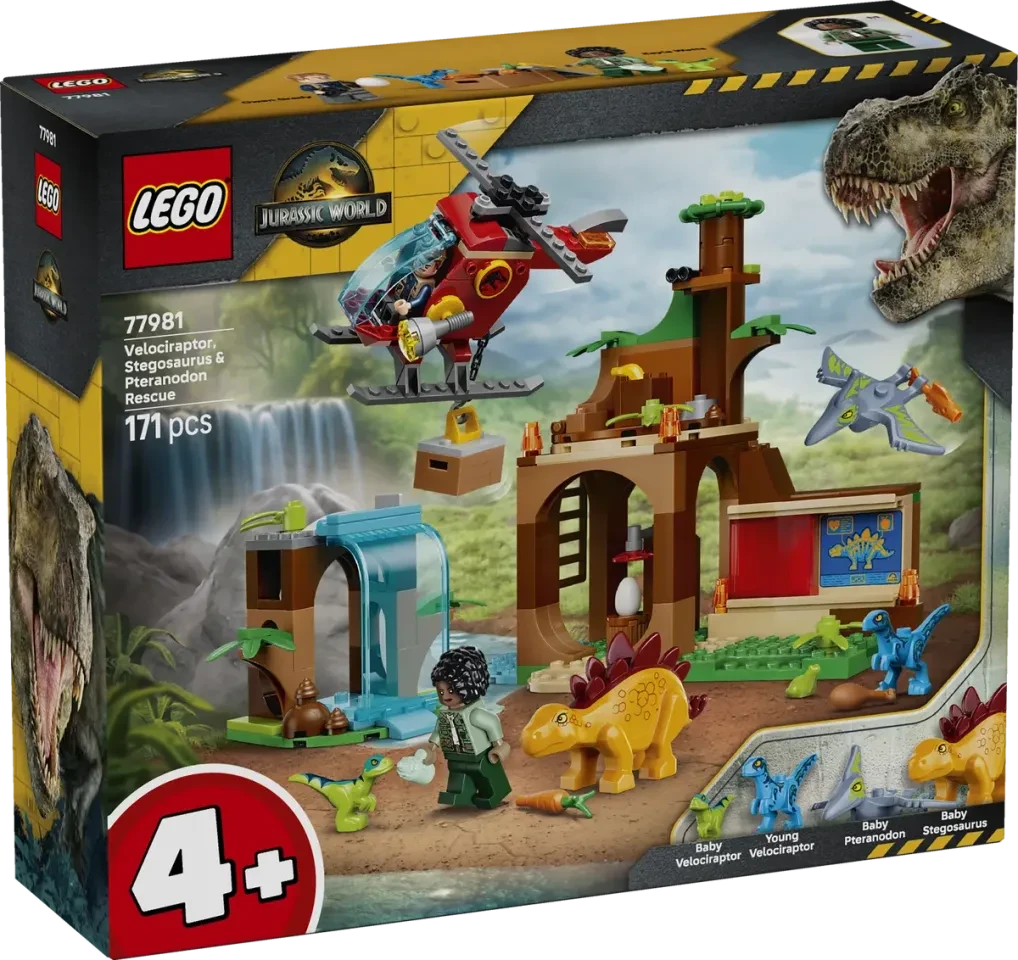 ●LEGO® Jurassic World Salvataggio di Velociraptor, Stegosauro e Pteranodonte (77981), 4+