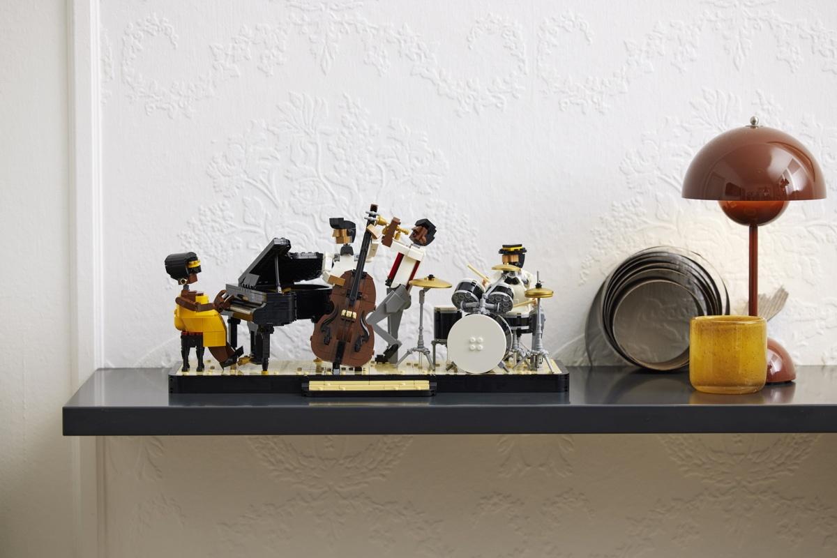 Con questo set, il sound e l’armonia del genere musicale più emozionante di sempre assumono una nuova forma, quella dei quattro musicisti rappresentati sul palco, mentre suonano rispettivamente un pianoforte a coda, una tromba, un contrabbasso e una batteria jazz. Al termine della costruzione, non rimane che esporre la band in mattoncini su una libreria, mentre si è cullati dalla propria canzone jazz preferita.