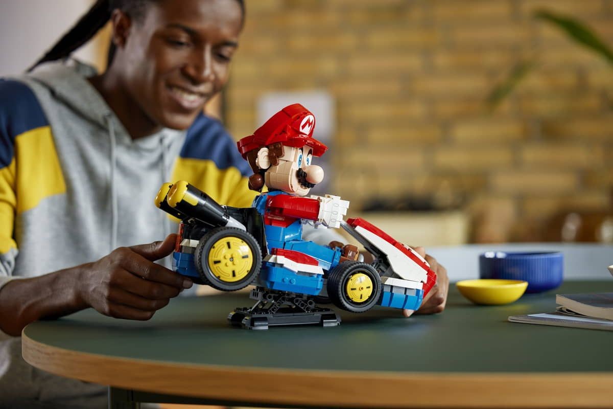 Il set, composto da ben 1.972 pezzi, permette ai costruttori di ricreare Mario alla guida del suo Kart. Il personaggio incluso è snodabile e dotato di testa e braccia mobili. Inoltre, grazie al supporto incluso, i fan potranno esporre il kart in diverse angolazioni, simulando l'azione di una corsa adrenalinica o una spettacolare derapata in puro stile Mario Kart.
