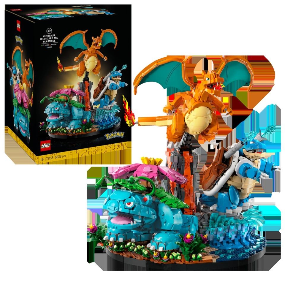 L'epico set LEGO® Pokémon™ Venusaur, Charizard e Blastoise porta ai fan tre dei Pokémon più celebri in uno dei più grandi set da esposizione mai realizzati dal Gruppo LEGO. Composto da oltre 6.838 pezzi, il set presenta per la prima volta le Evoluzioni di tre Pokémon primi compagni d'avventura della regione di Kanto in versione mattoncini LEGO.