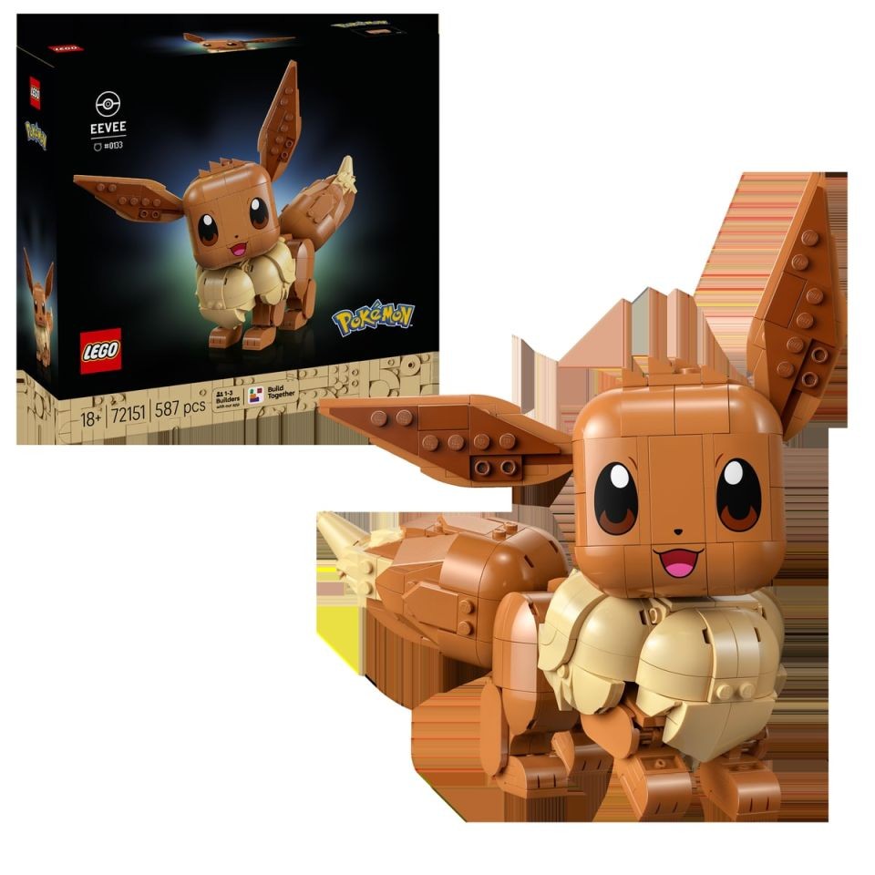 Sarà possibile celebrare il fascino irresistibile di Eevee con LEGO® Pokémon™ Eevee, un set da 587 pezzi che dà vita all'amato Pokémon con dettagli dinamici. Il volto espressivo di Eevee, la coda, testa e arti mobili permettono ai costruttori di posizionarlo sia a riposo sia pronto a scattare in azione. Con l'app Build Together, questo set offre ai fan la possibilità di costruire insieme con amici e familiari.