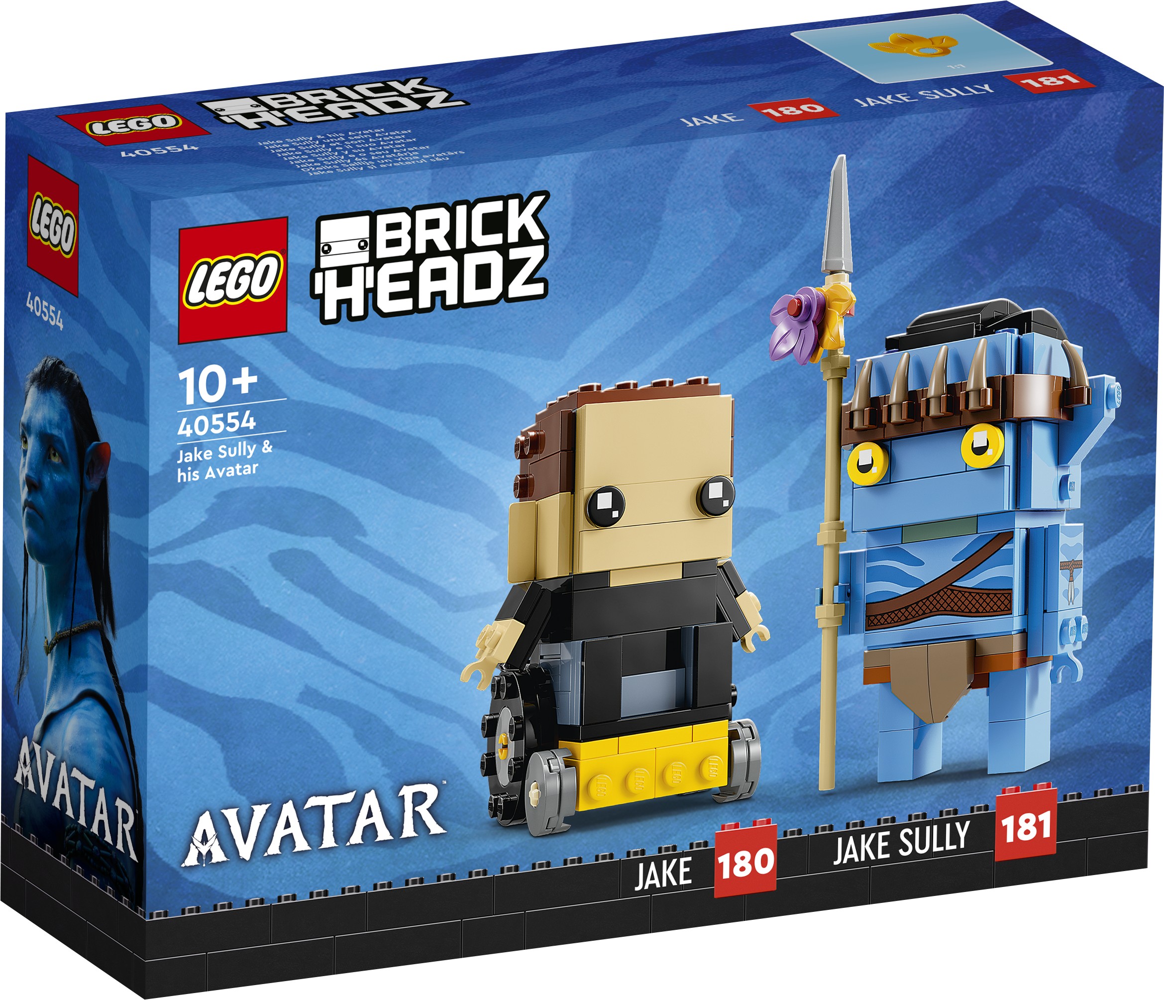- Emoziona i fan di Avatar con questo divertente set LEGO® BrickHeadz™ con 2 versioni di Jake Sully: come umano (la figura può essere rimossa dalla sedia a rotelle) e nella sua forma di Avatar.