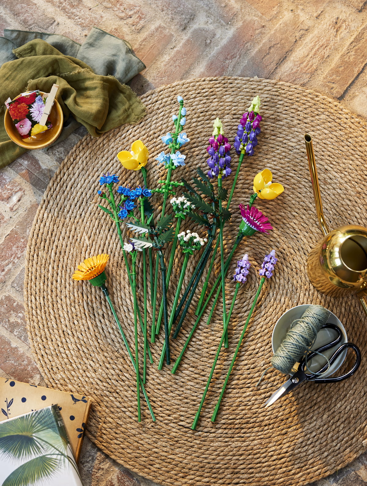 Questo set della linea Botanical è composto da 8 specie di fiori selvatici come fiordalisi, lavanda, papaveri del Galles, prezzemolo, felci, gerbere, speronelle e lupinelle, tutti con steli regolabili. Una volta completato, il bouquet può diventare oggetto di arredo, decorando gli interni della propria abitazione. Questo set, inoltre, include numerosi elementi realizzati con una plastica di origine vegetale, prodotta con canna da zucchero sostenibile e si presta per essere regalato per qualsiasi occasione.
