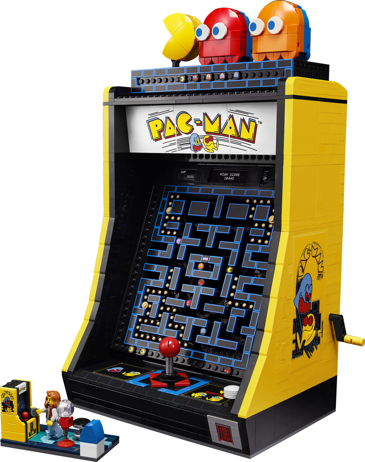 Il set da costruzione PAC-MAN Arcade LEGO® Icons ricrea l’iconico gioco arcade con labirinto, in assoluto uno dei videogiochi più famosi al mondo. Questa replica LEGO è ricca di dettagli di design retrò e di funzioni divertenti, tra cui un joystick a 4 direzioni e una gettoniera che si illumina. Girando la maniglia è possibile attivare un labirinto meccanico che simula il classico inseguimento. Inoltre c’è una scena arcade anni ’80 da costruire, che rende il set il regalo perfetto per i più nostalgici!