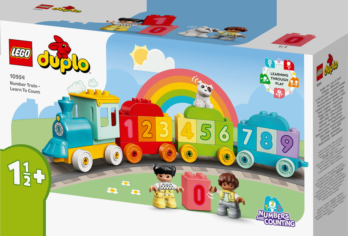 Il set Treno dei numeri della linea LEGO® DUPLO® è dedicato ai più piccoli ed è composto da 10 mattoncini colorati che i bambini possono impilare e ordinare, per iniziare a familiarizzare con i numeri e imparare a contare. All’interno, sono presenti i personaggi di una bambina, un bambino e un cane DUPLO, perfetti per stimolare il gioco di ruolo.