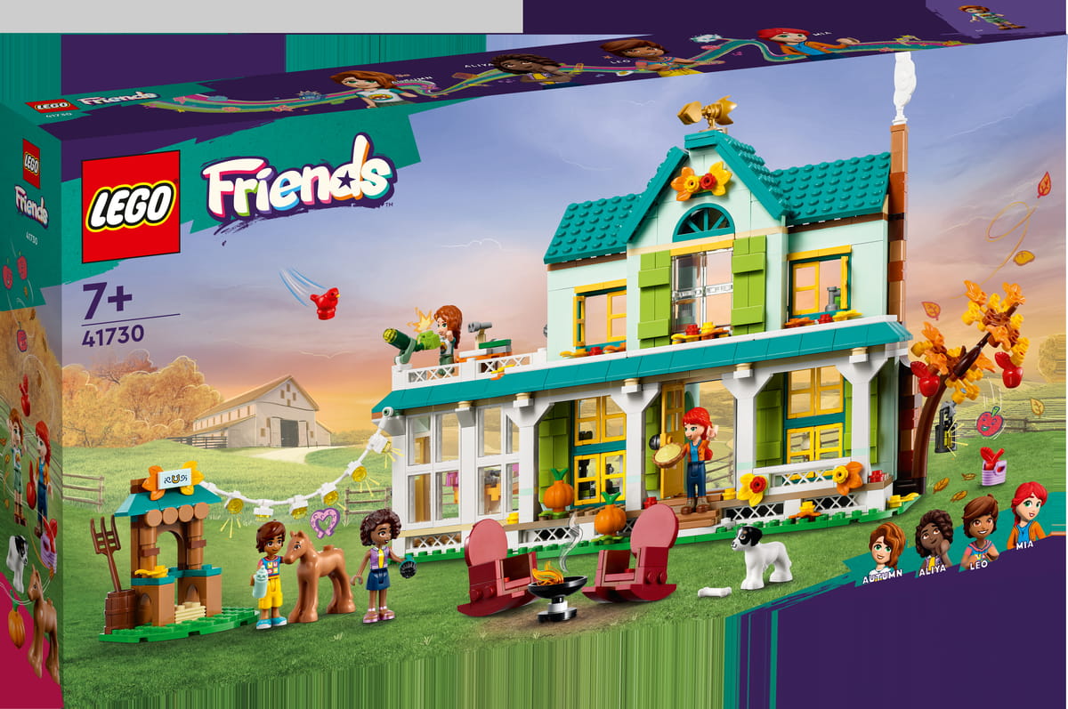 Questo set appartiene alla linea LEGO® Friends, dedicata al valore dell’amicizia, della condivisione ma soprattutto dell’inclusività. Nella Casa di Autumn è possibile divertirsi con tantissime attività, in compagnia degli amici Leo e Aliya. Si può cucinare una torta con Leo, dopo aver raccolto le mele in giardino, oppure aiutare Aliya nella cura del nuovo puledro. La casa ha molte stanze da esplorare, tanti spazi esterni, e diversi accessori con cui divertirsi giocando tra amici!