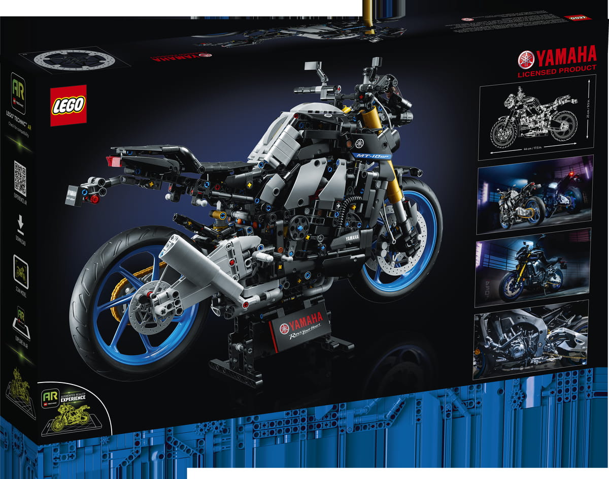 Questo modello LEGO® Technic rende omaggio alla motocicletta Yamaha più potente della categoria “hyper naked” e presenta un motore a 4 cilindri, una trasmissione a 3 velocità e una trasmissione finale a catena, con sospensioni anteriori e posteriori funzionanti. Il set include anche uno sterzo funzionante e gli elementi del cambio sono super realistici. Grazie all’app LEGO AR, inoltre, è possibile vedere il modello prendere vita.