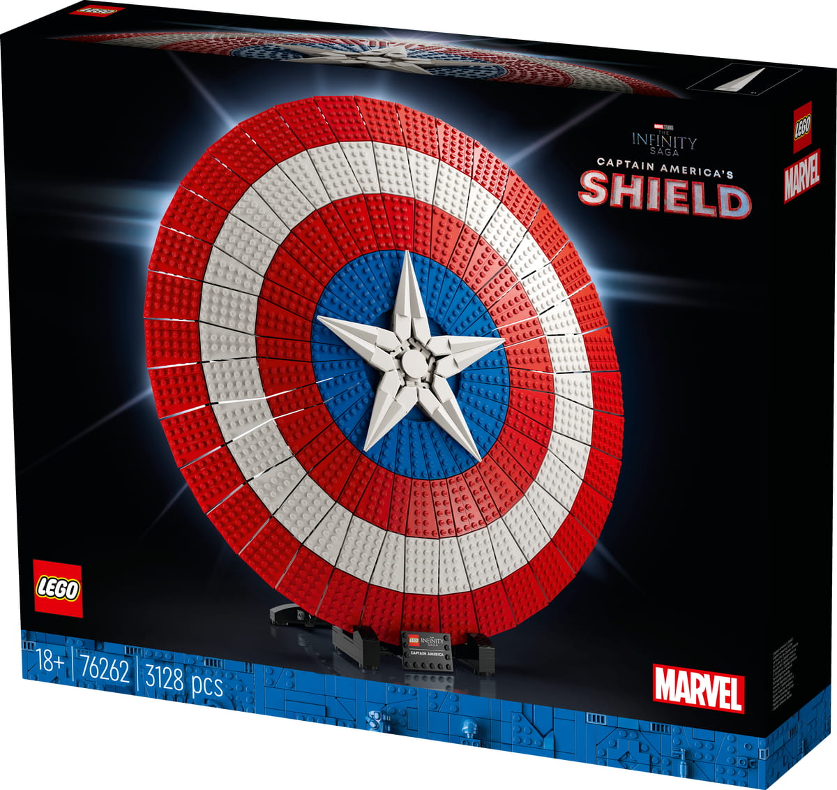 I fan adulti dei supereroi più celebri possono scatenare la loro passione con la riproduzione di uno degli oggetti più iconici dell’universo cinematografico Marvel. Il modello poggia su un supporto che incorpora una targhetta e viene fornito con una minifigure di Captain America con il proprio scudo e il martello di Thor, Mjölnir. Emblema del bene contro il male, lo scudo di Captain America è un modello dettagliato e autentico, gratificante da costruire e piacevole da ammirare.