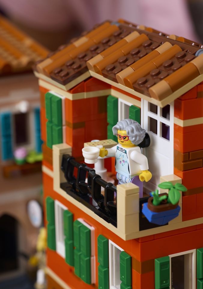 Il set include anche 10 minifigure LEGO, tra cui il proprietario di una gelateria, un pescivendolo e una nonna che prepara la pasta, dando vita a questa vivace scena. I costruttori possono ricreare momenti toccanti, come una nonna che insegna al nipote a preparare le tradizionali trofie o un turista che assapora le prelibatezze locali.
