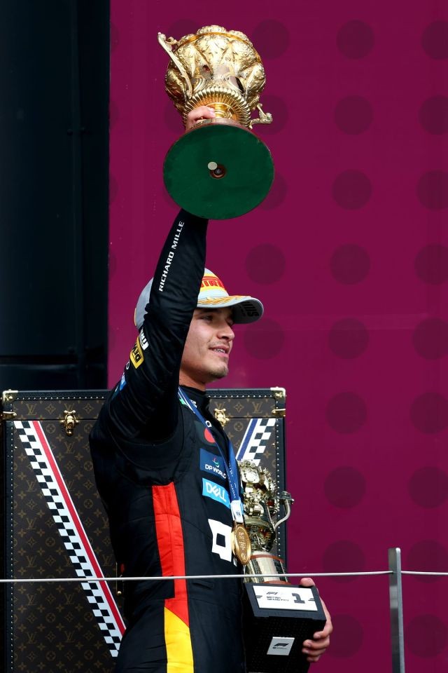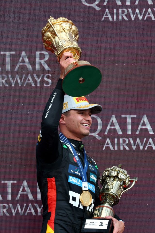 Dopo 52 giri ricchi di azione sullo storico circuito di Silverstone, Lando Norris del McLaren Formula 1 Team ha conquistato il primo posto, aggiudicandosi il trofeo LEGO dorato, composto da 2.717 mattoncini LEGO e del peso di oltre 2 kg. È stato affiancato dal compagno di squadra Oscar Piastri, al secondo posto, e da Nico Hulkenberg del KICK Sauber F1 Team, al terzo posto, che hanno completato il podio a Silverstone, sollevando i loro trofei LEGO verso il cielo. Anche il costruttore vincitore, il team McLaren Formula 1, ha ricevuto un trofeo unico costruito con mattoncini da esporre nella propria bacheca.